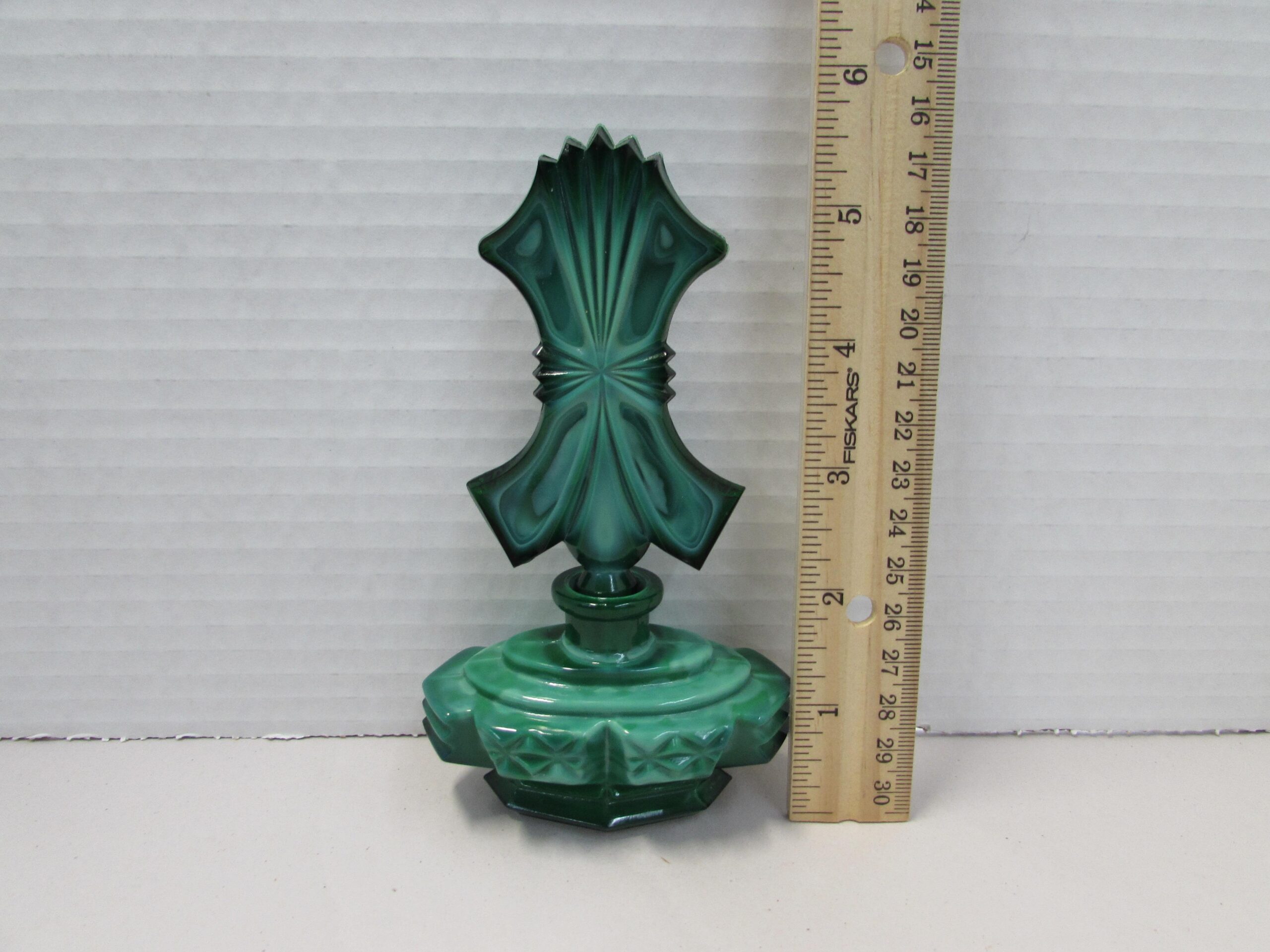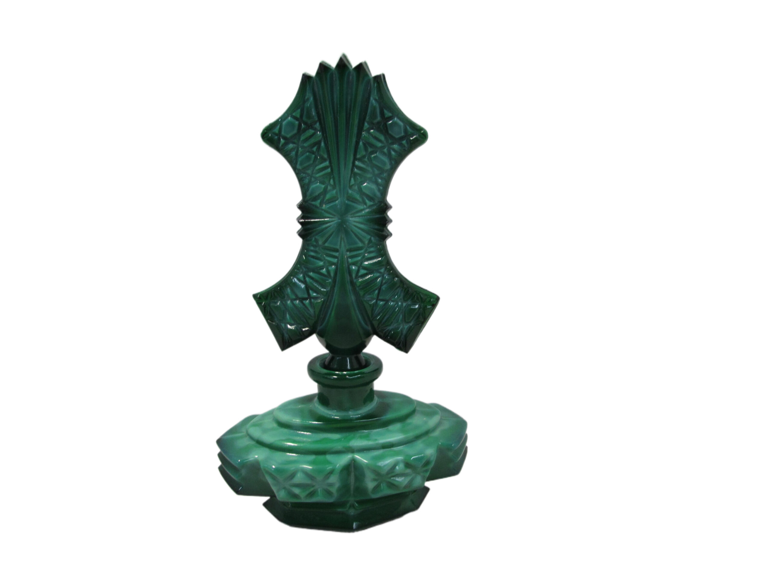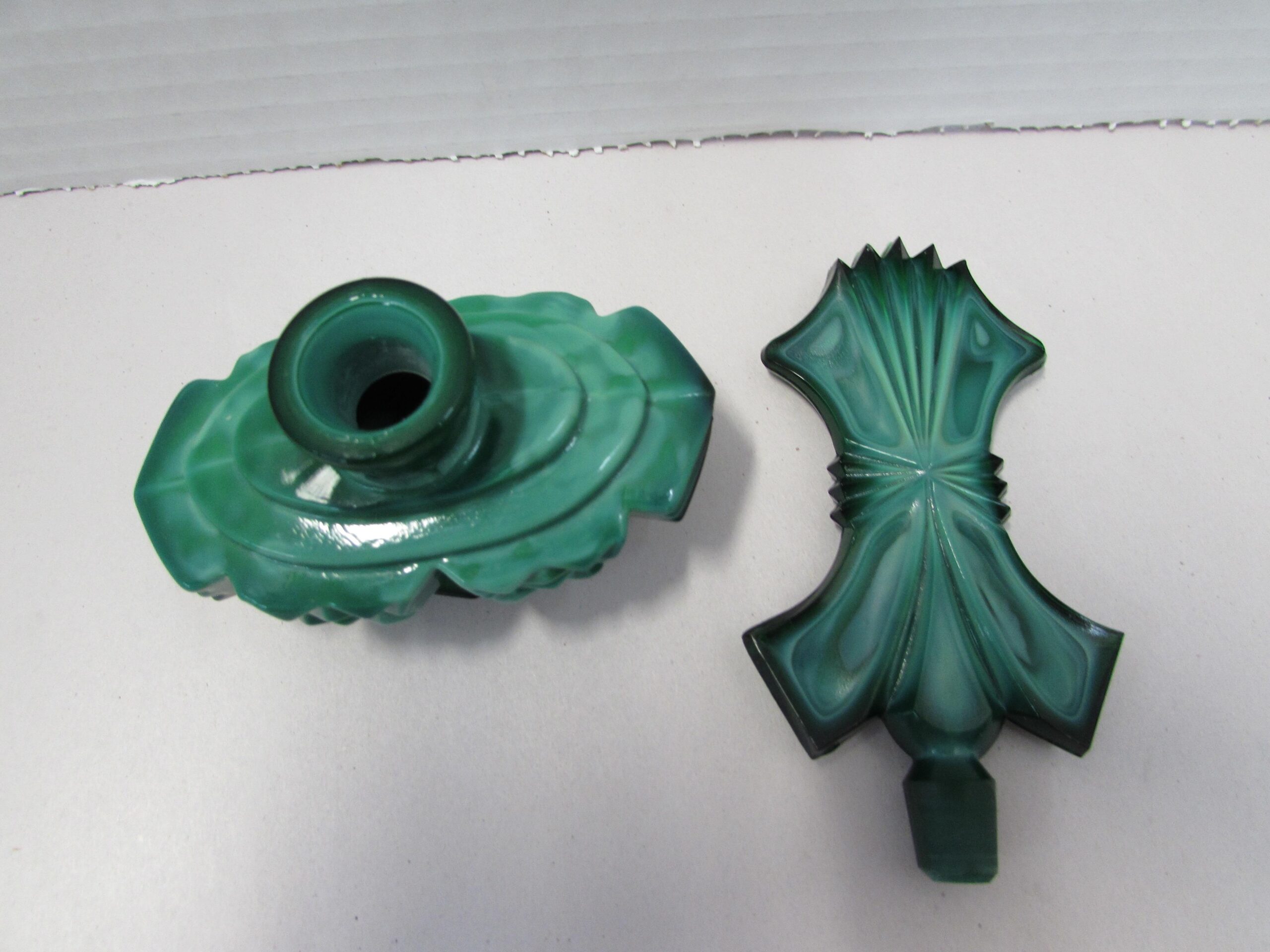 1920’s art deco Malachite glass perfume bottle, made in Bohemia, Czech Republic.