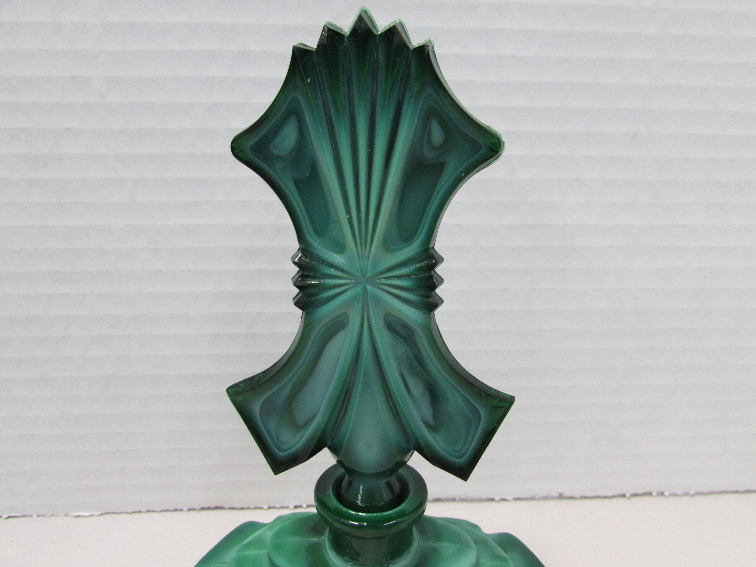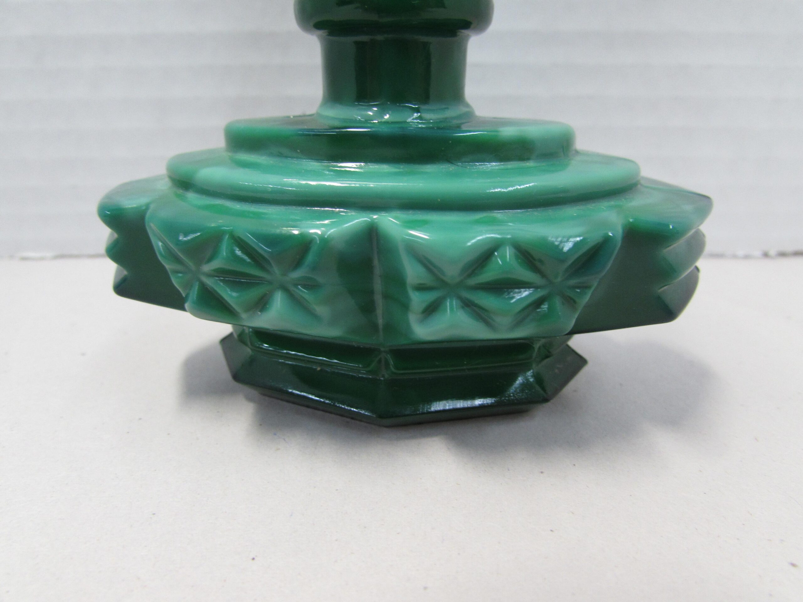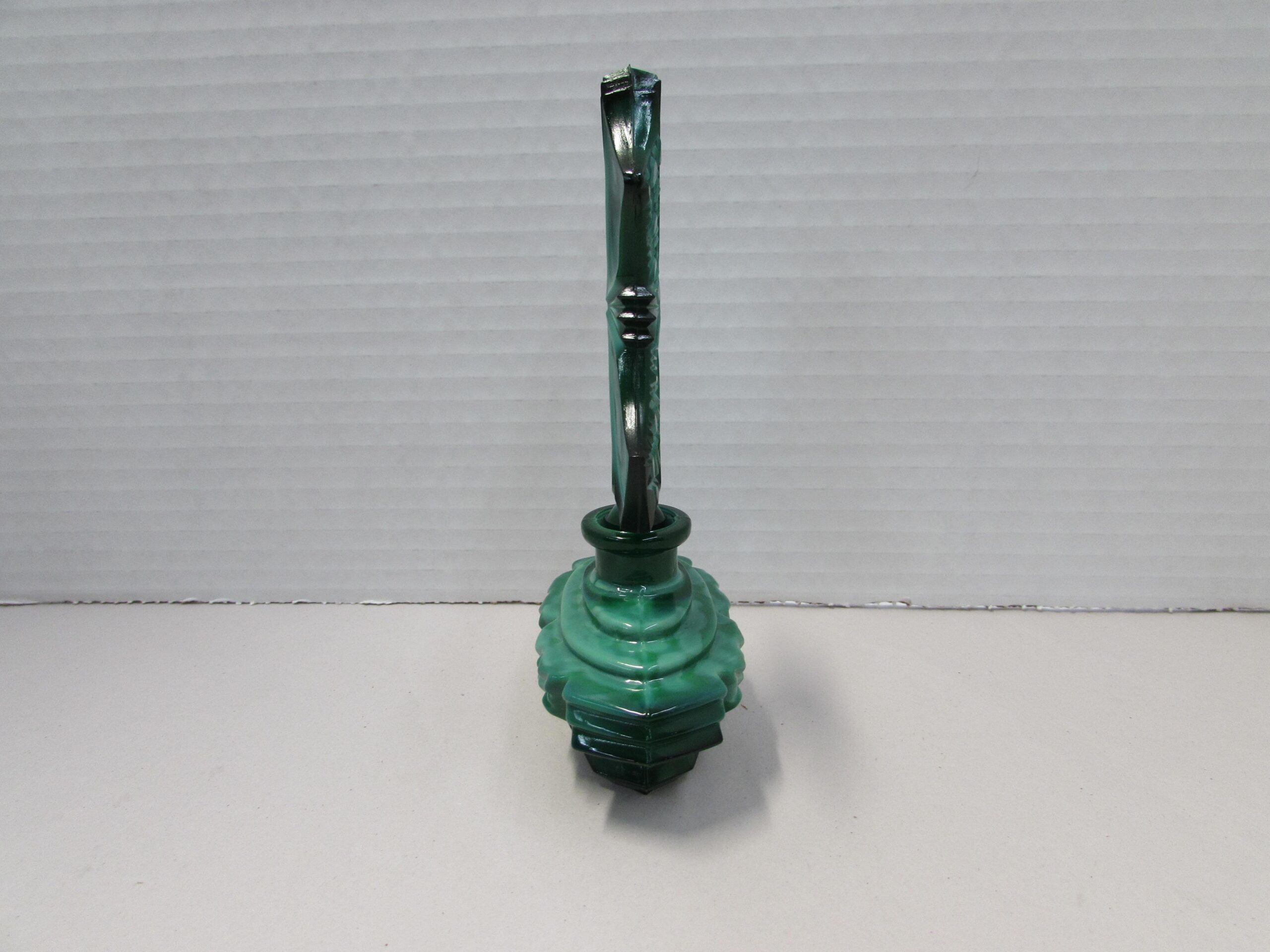 1920’s art deco Malachite glass perfume bottle, made in Bohemia, Czech Republic.