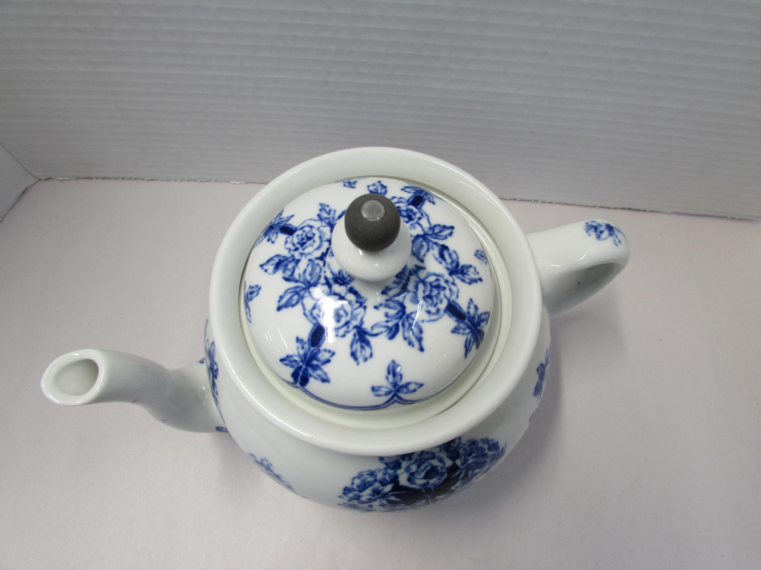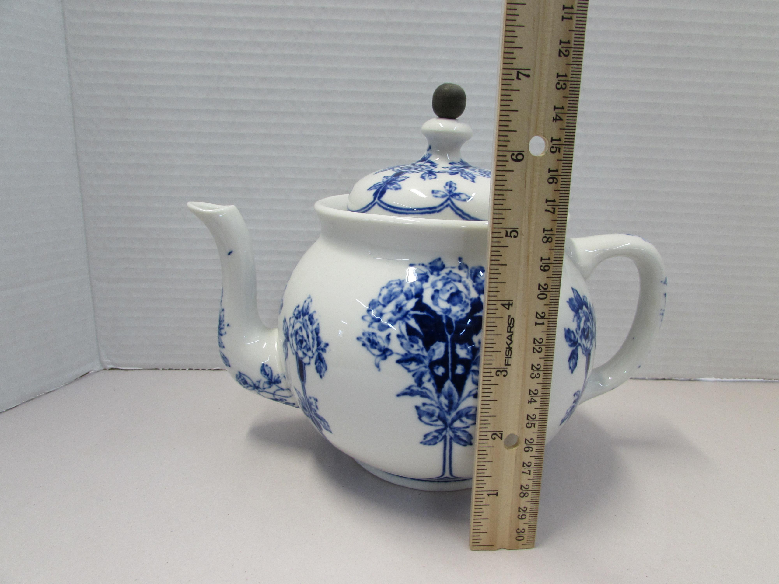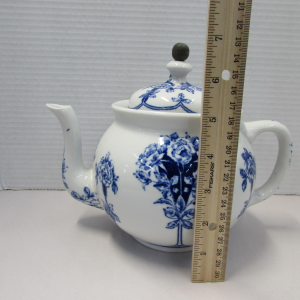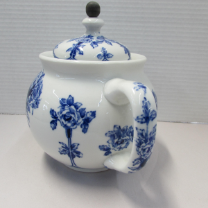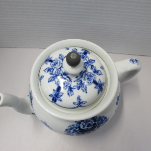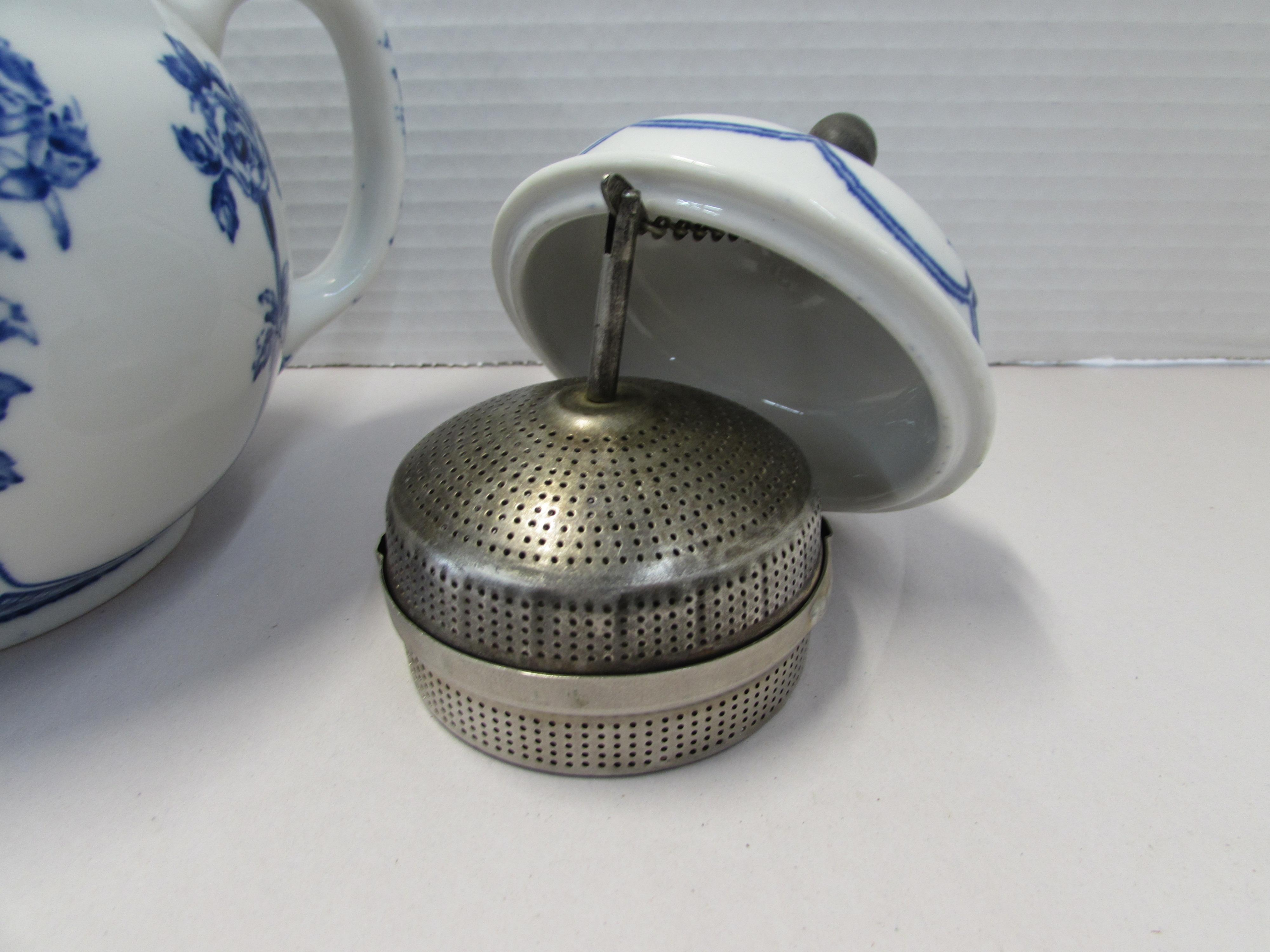 Buffalo Pottery Flow Blue Teapot with Tin Basket quantity