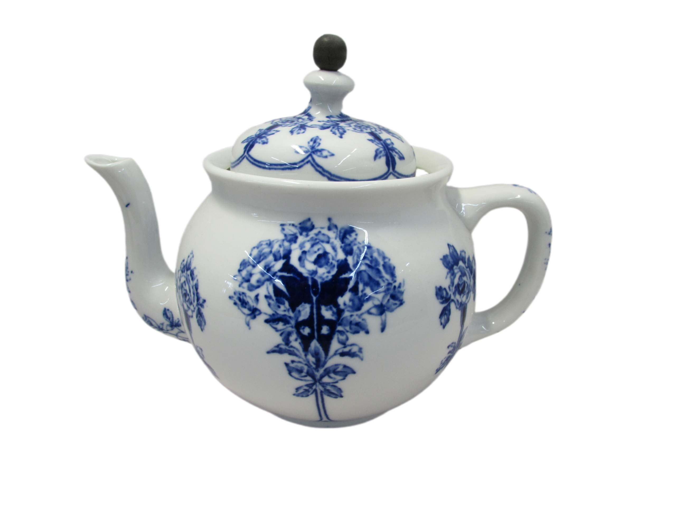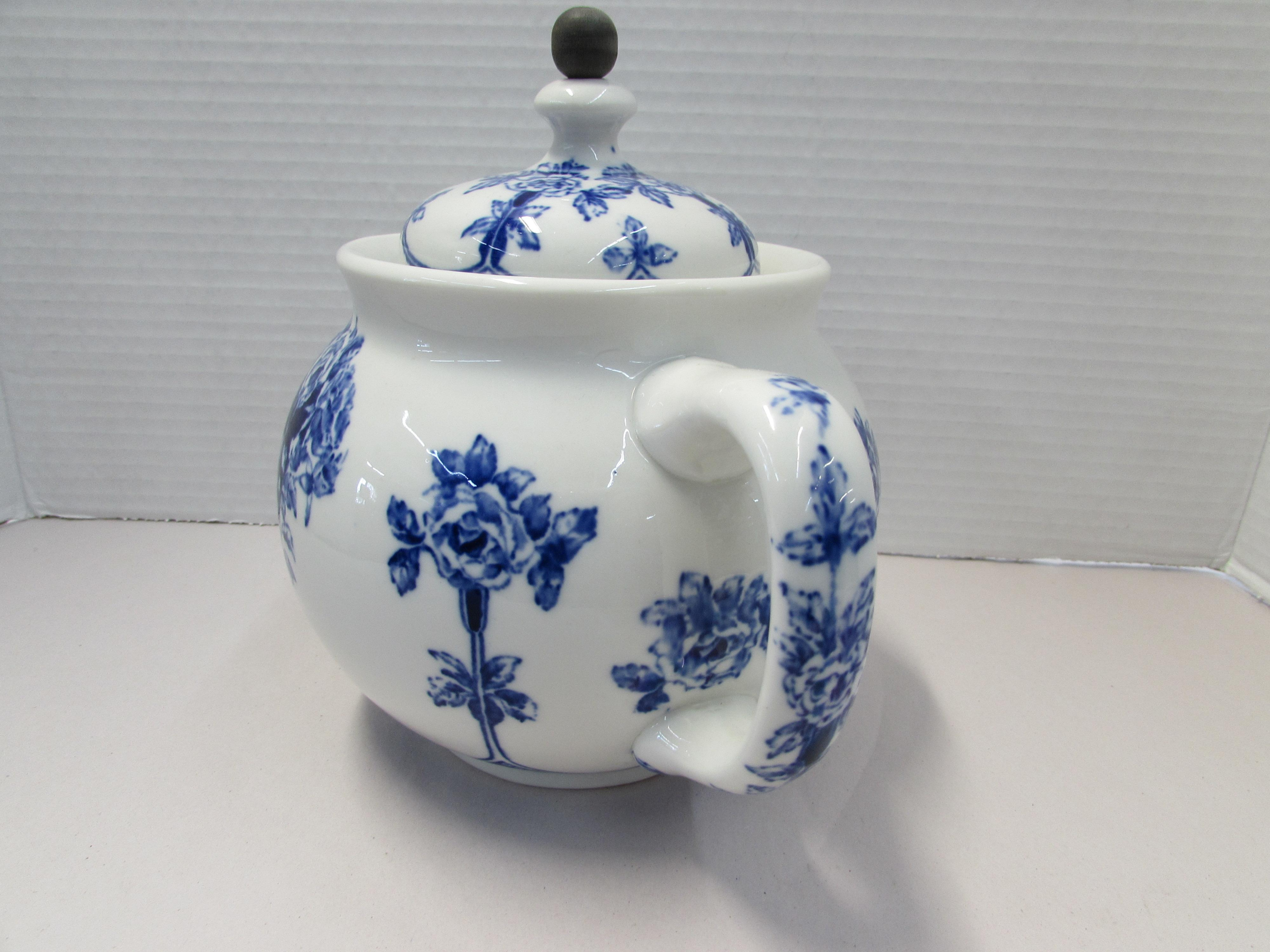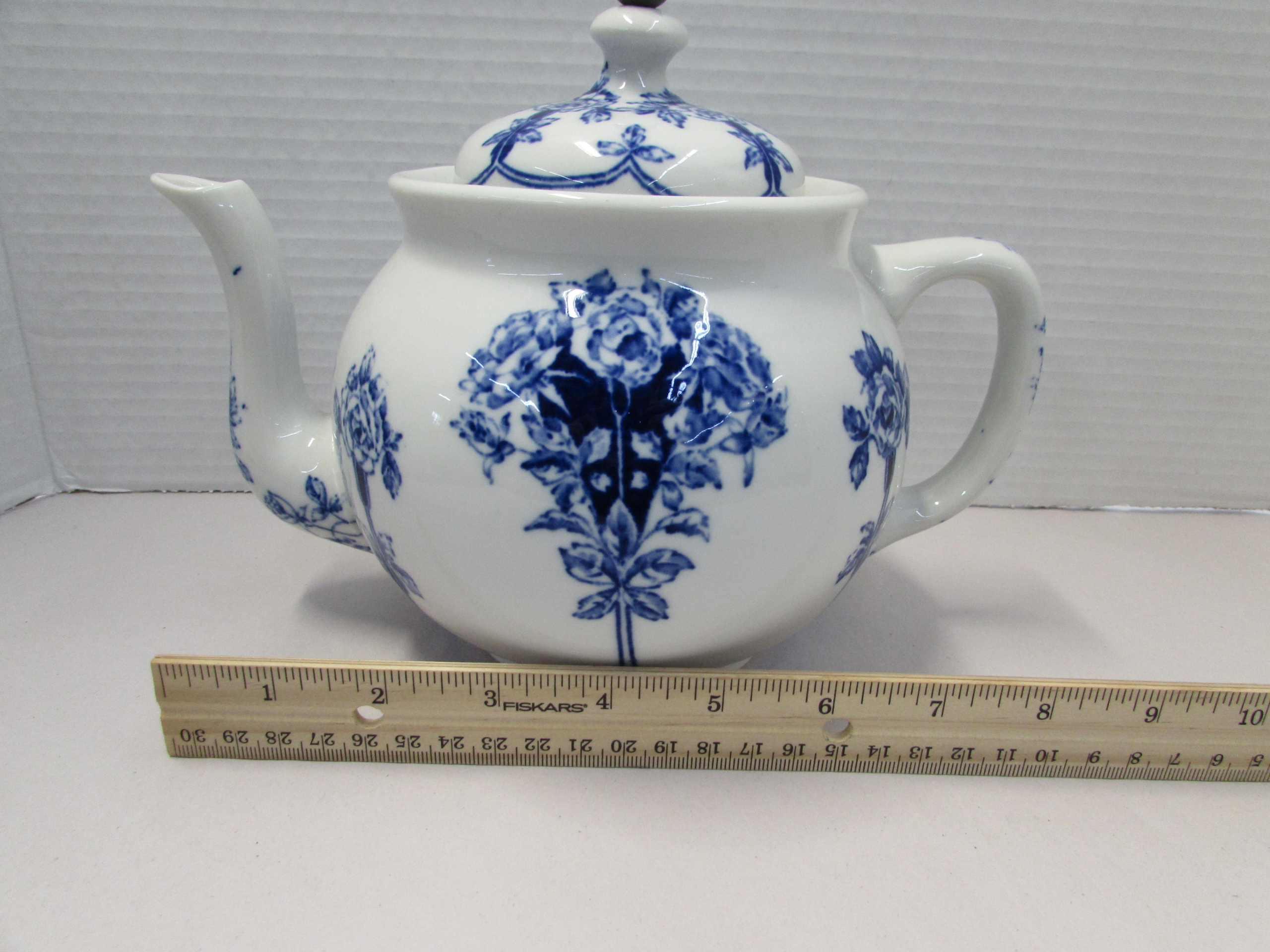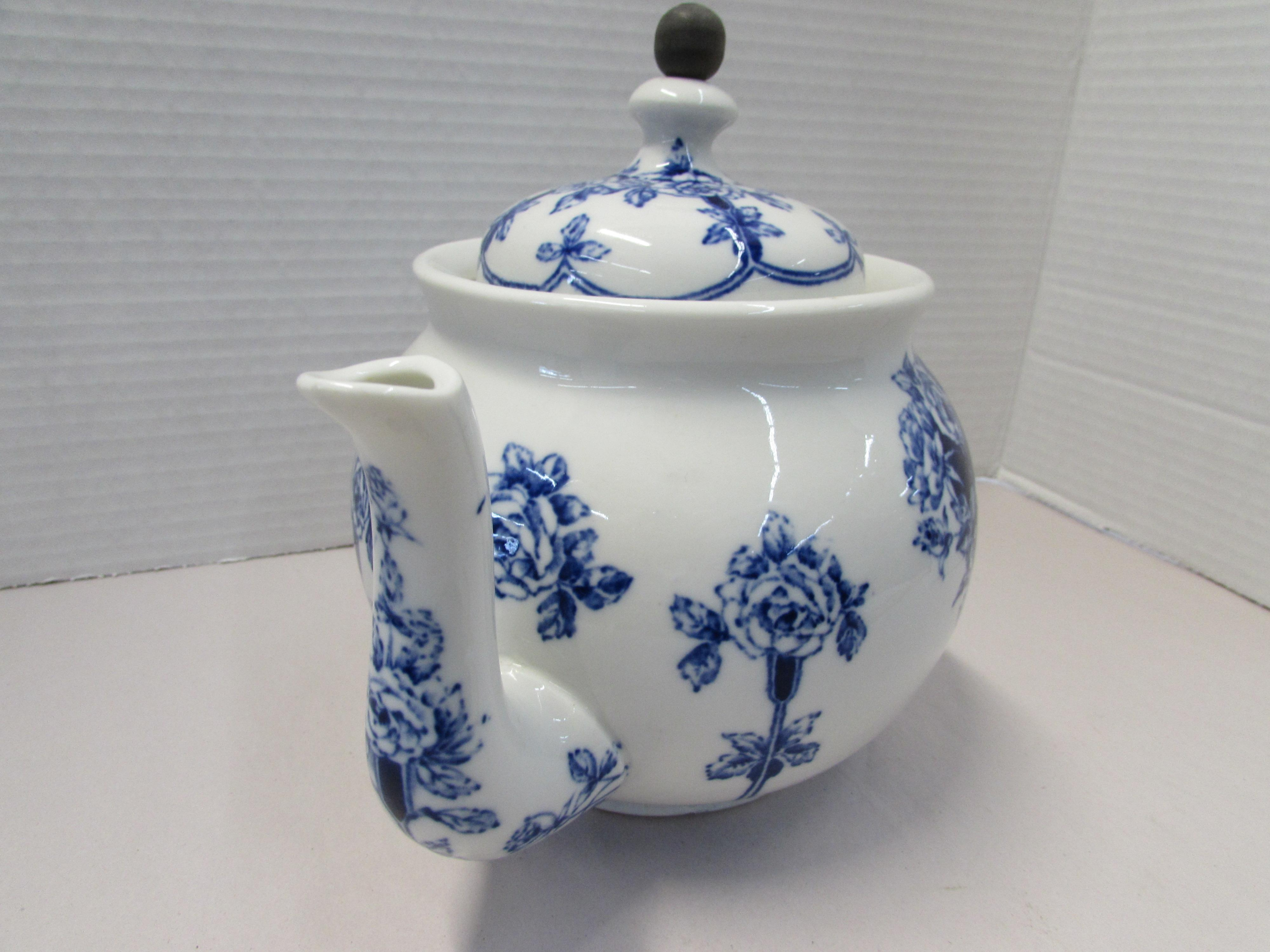 Buffalo Pottery Flow Blue Teapot with Tin Basket quantity