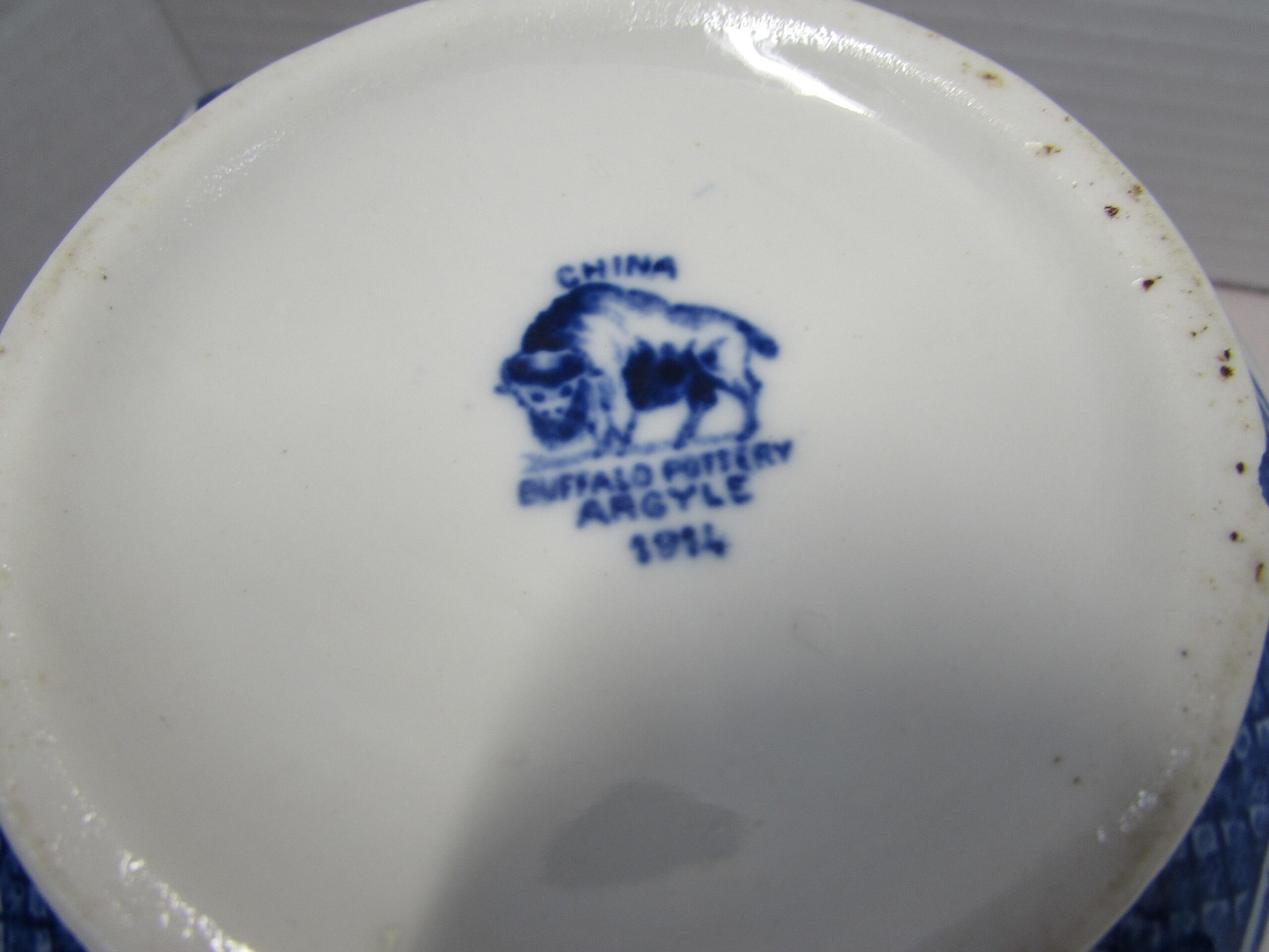 Buffalo Pottery Flow Blue Teapot with Tin Basket