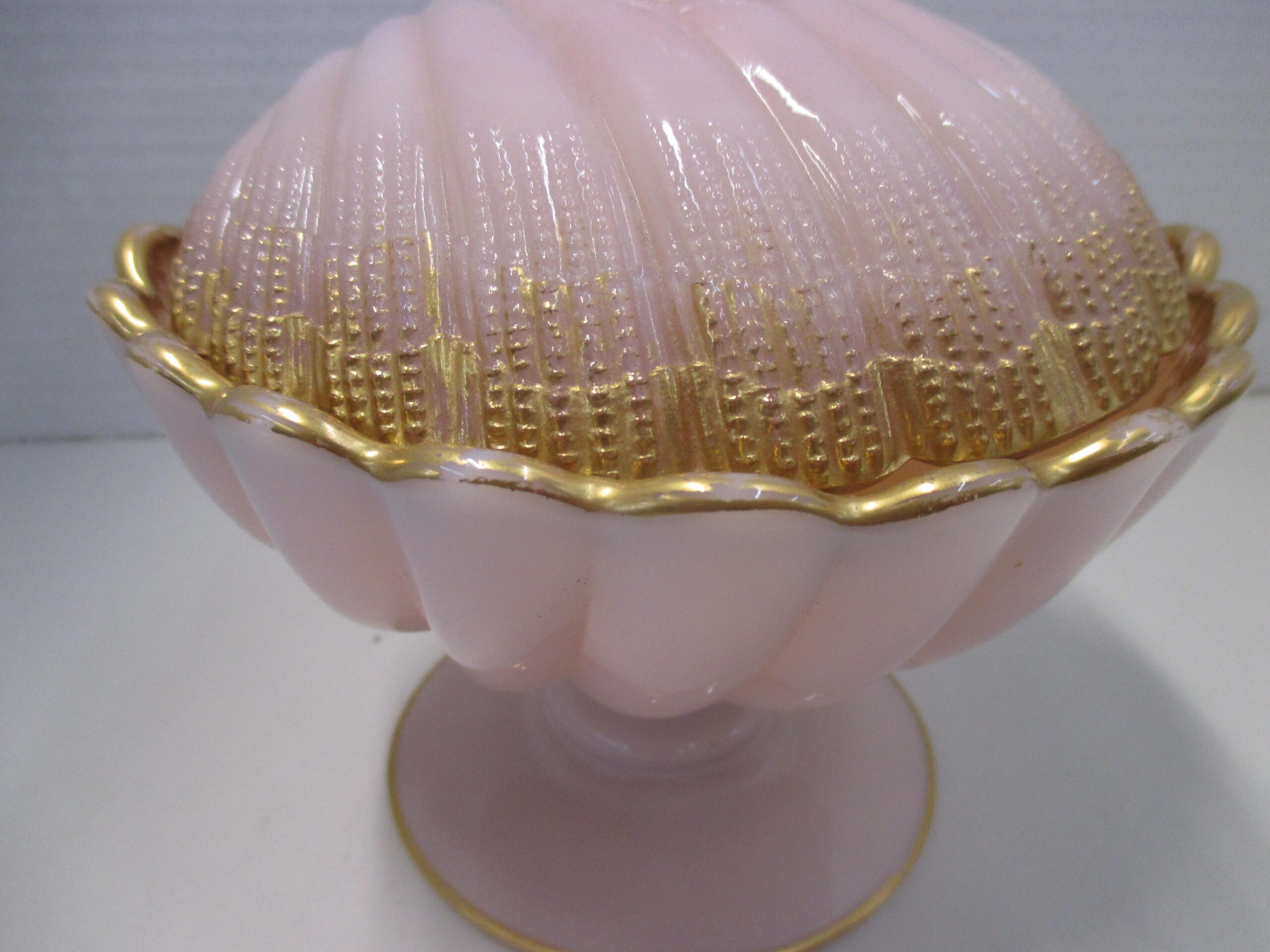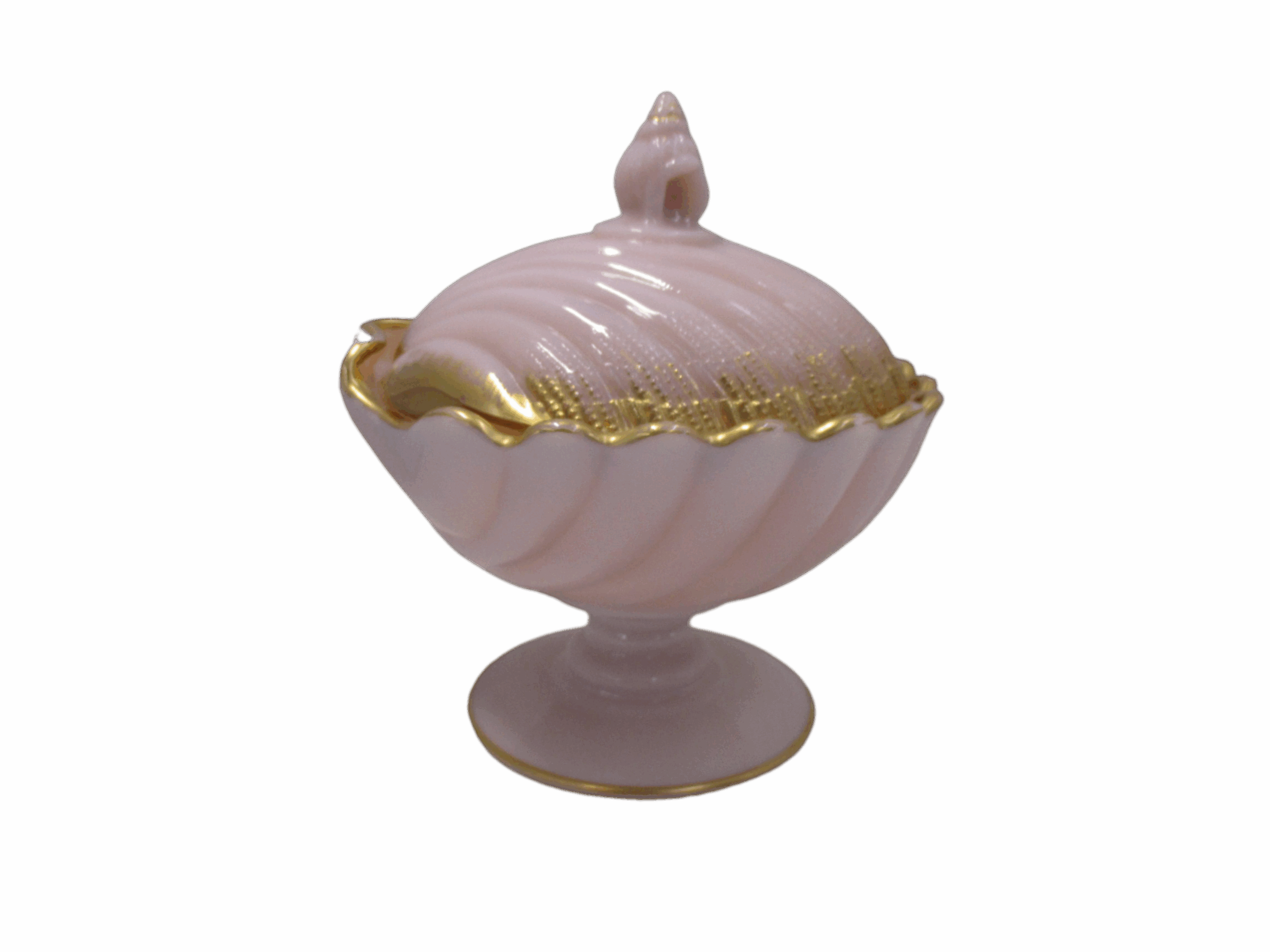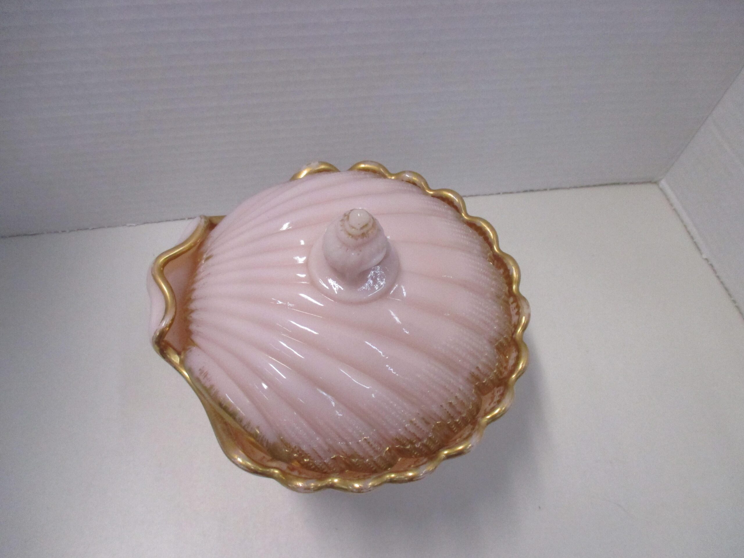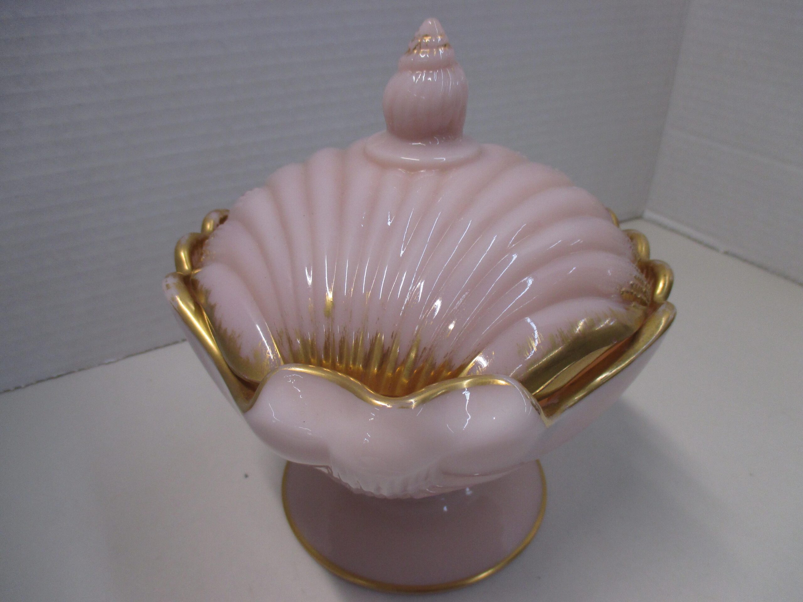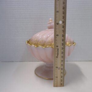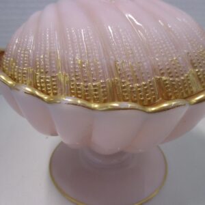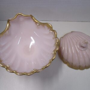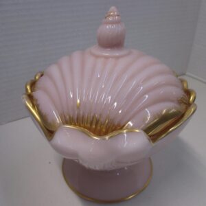Antique Cambridge crown pink Tuscan lidded seashell candy dish.