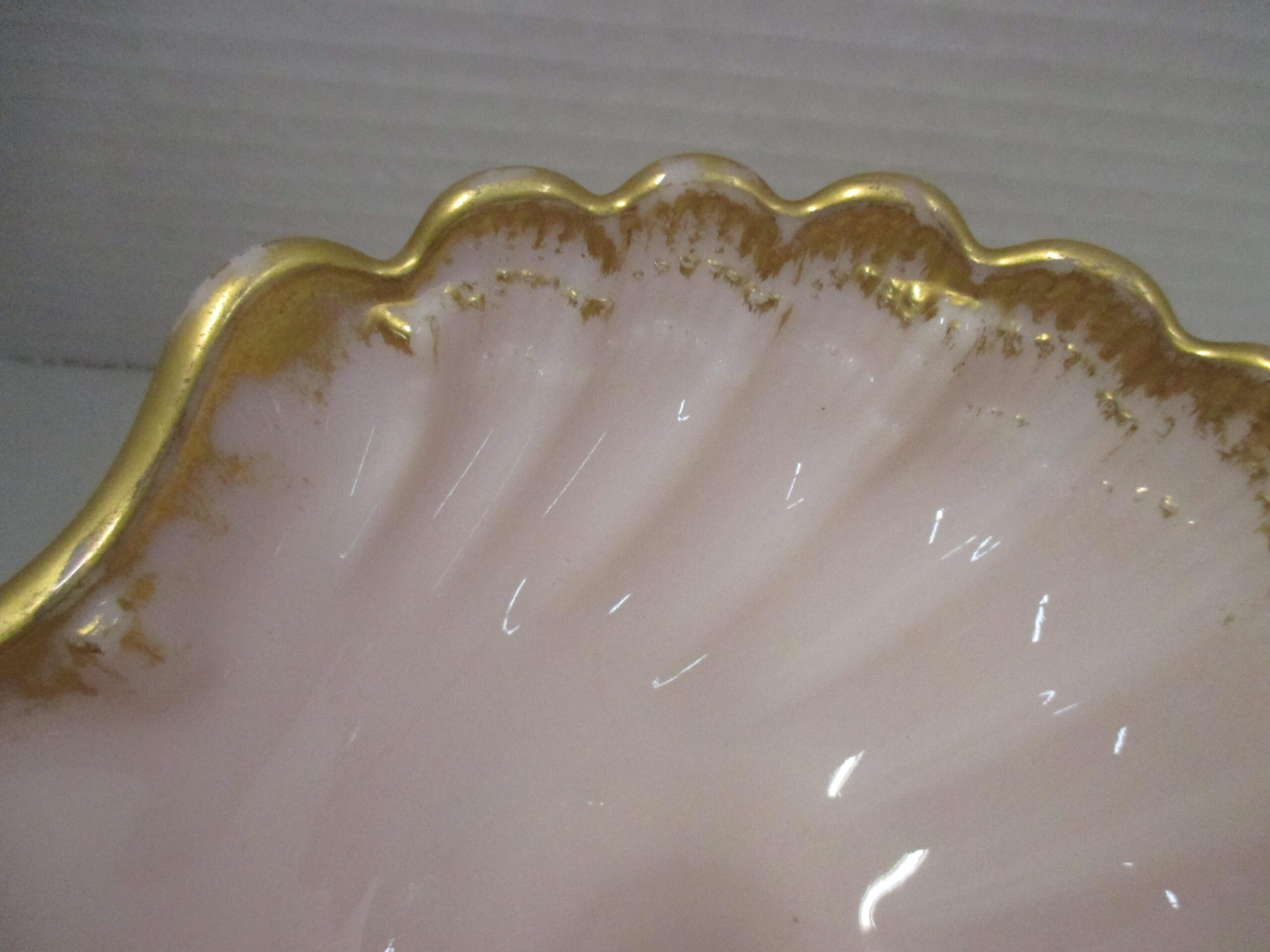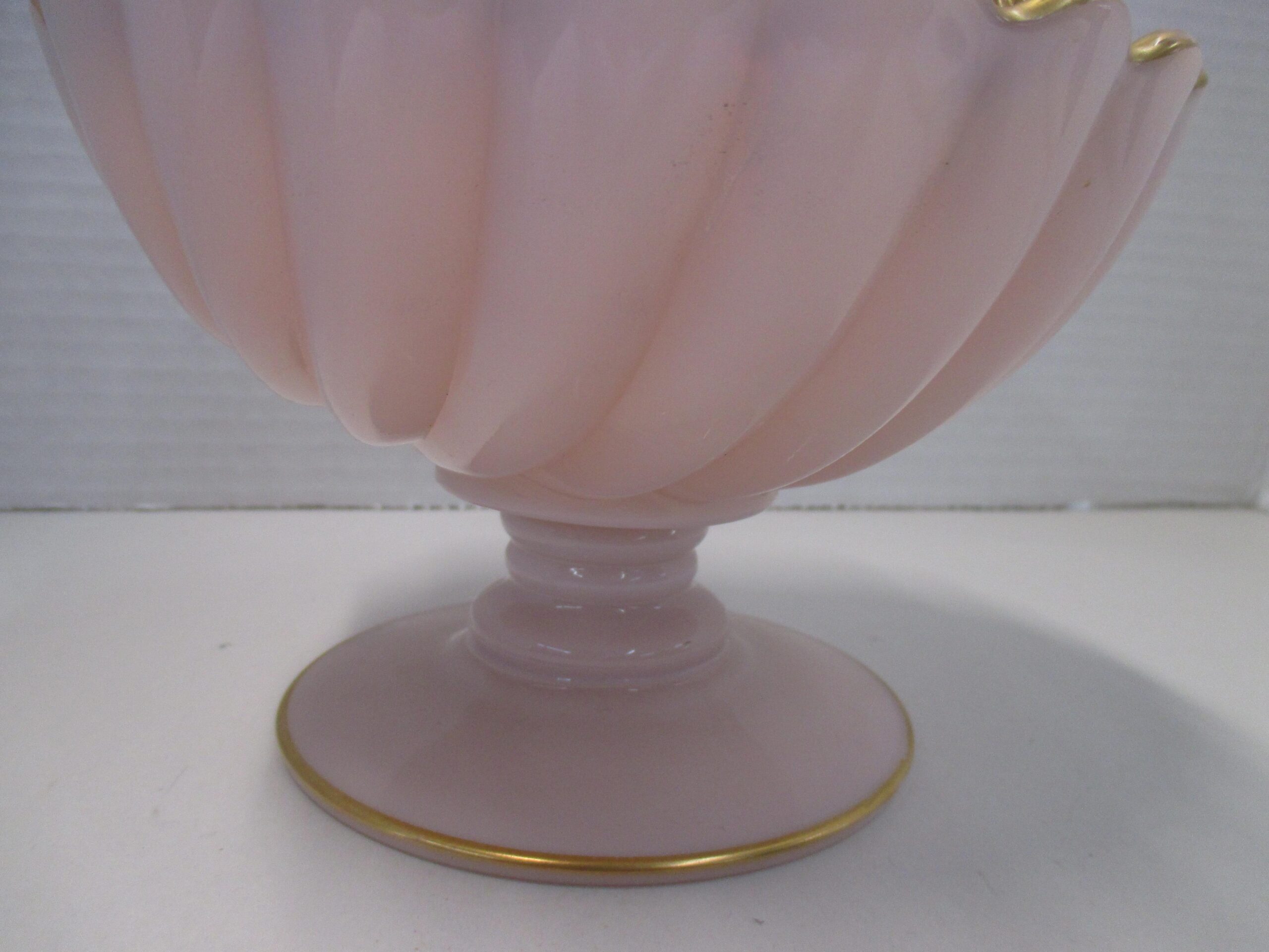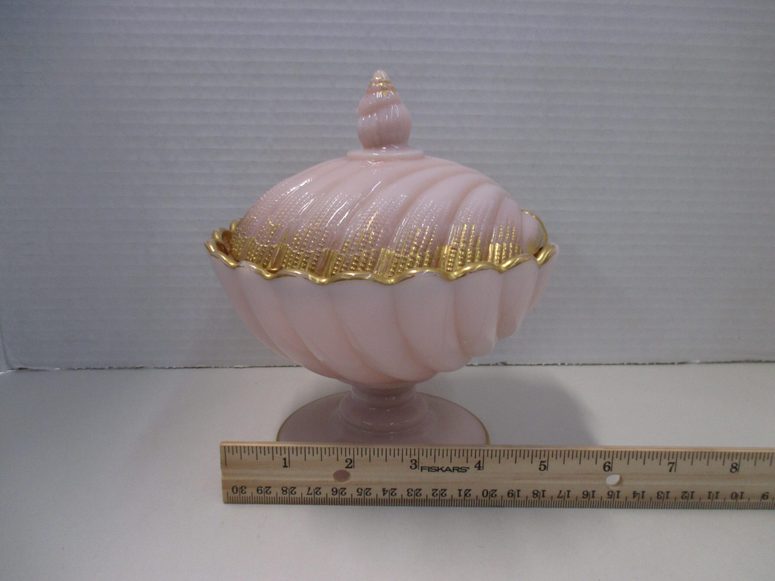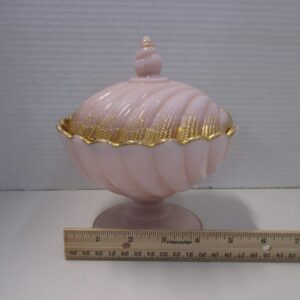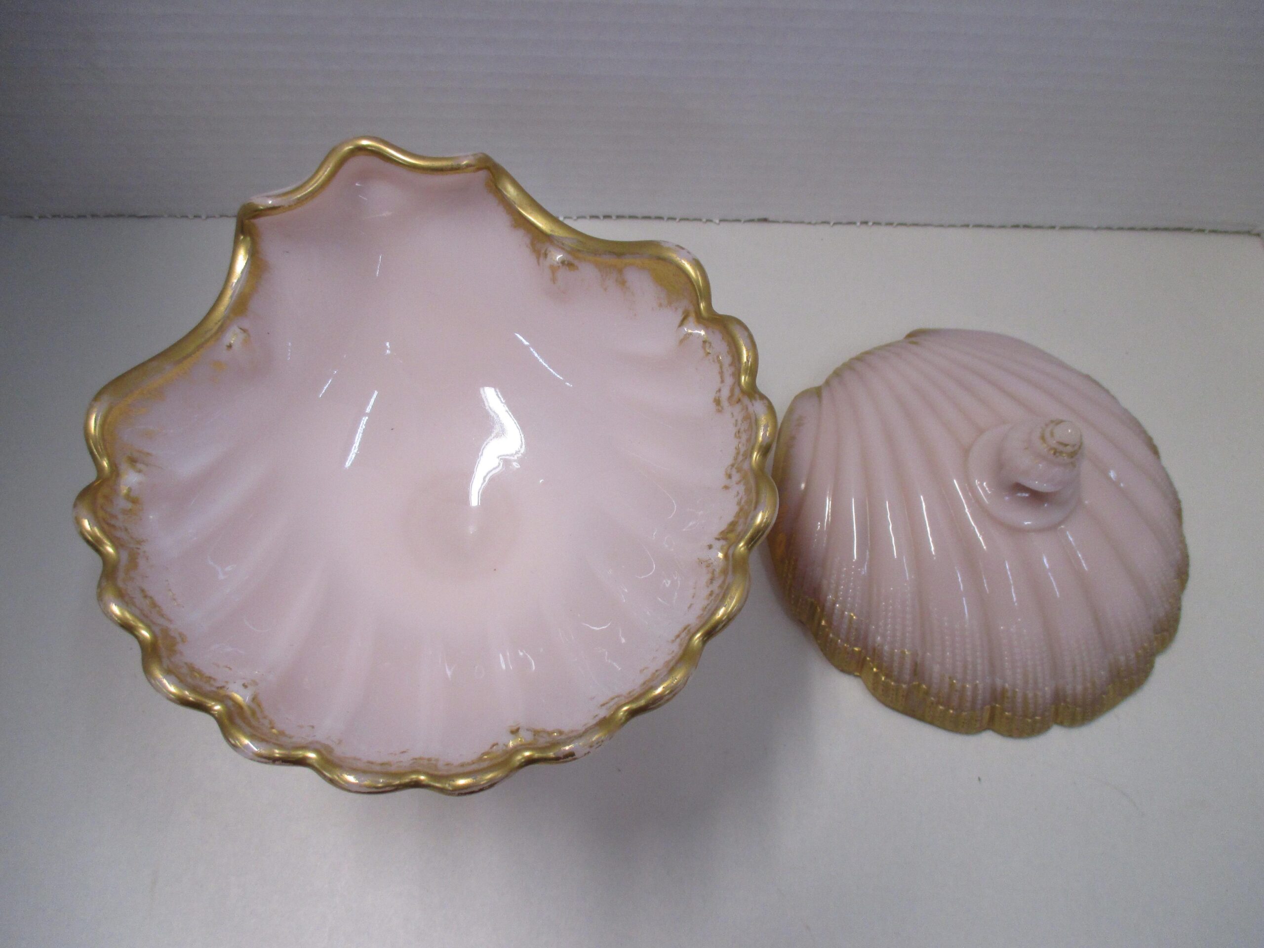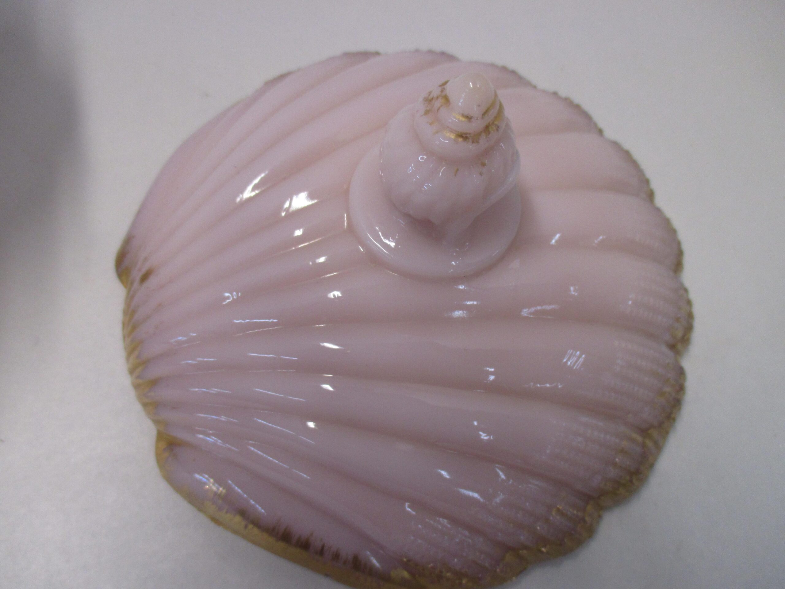 Antique Cambridge crown pink Tuscan lidded seashell candy dish.