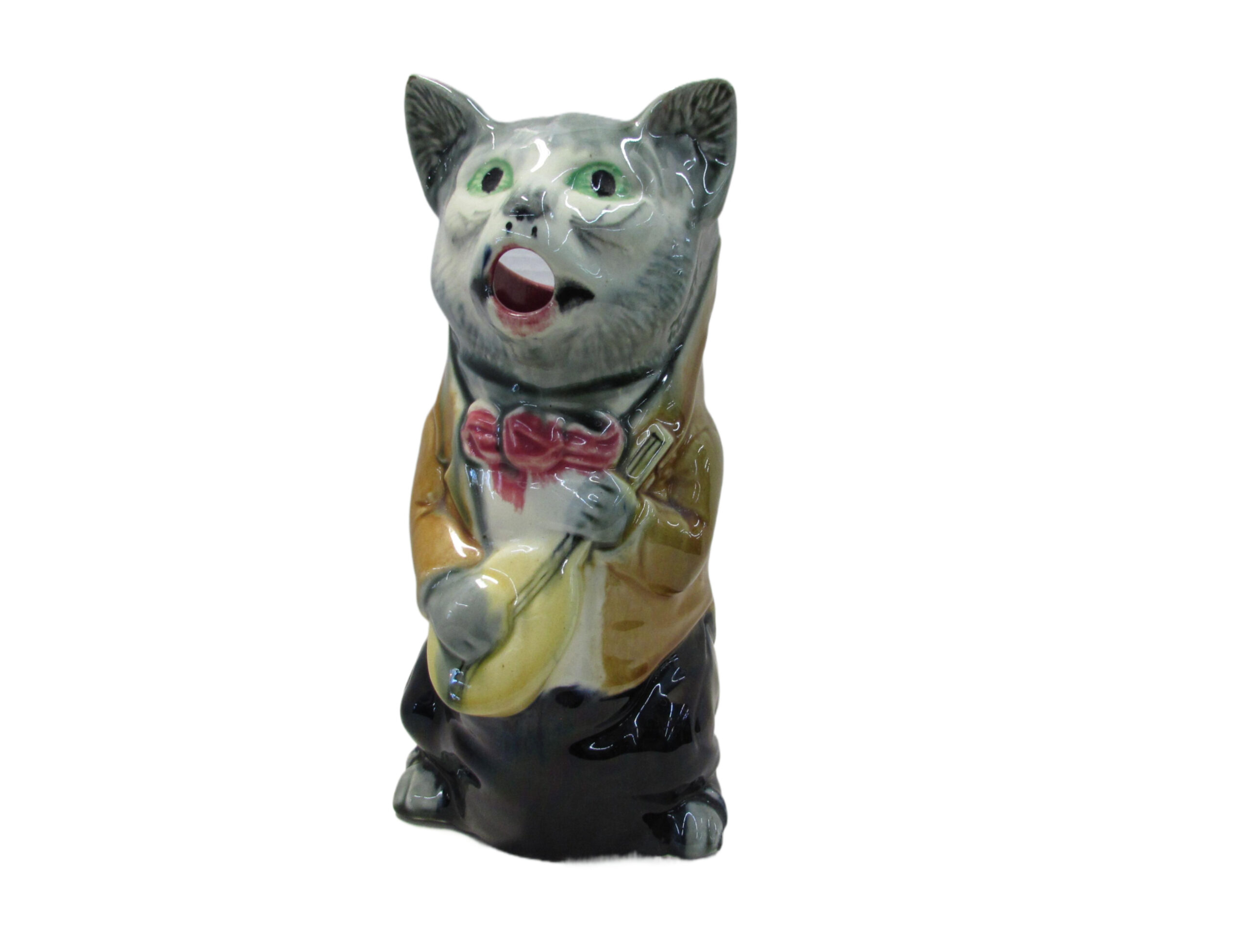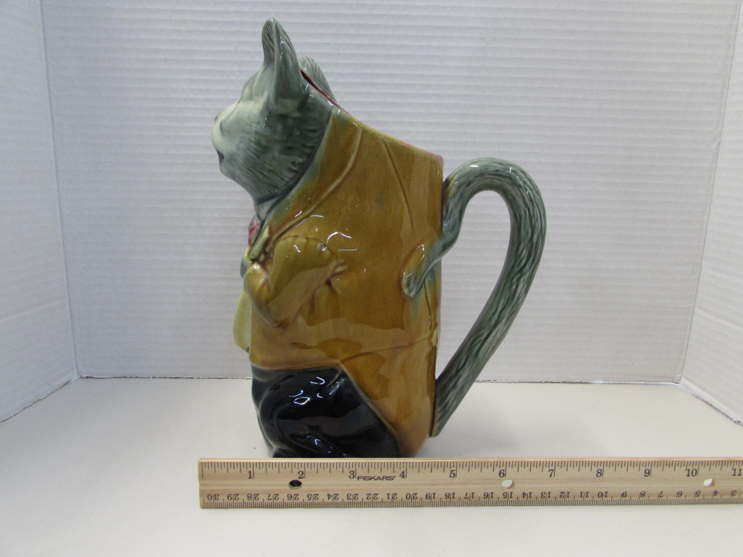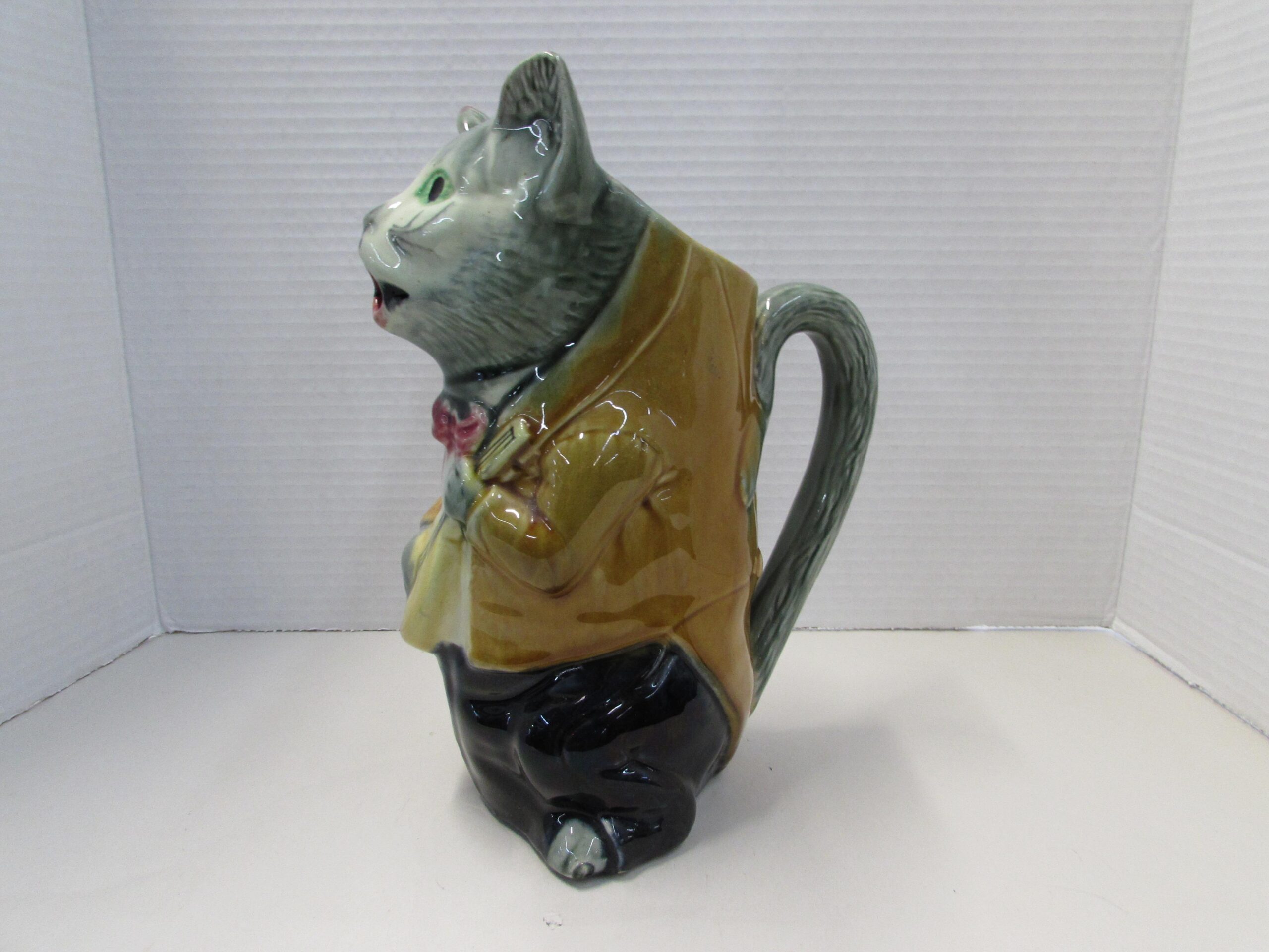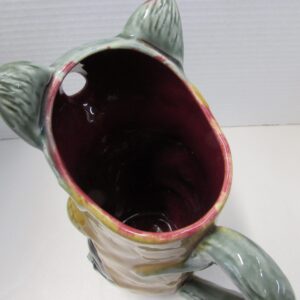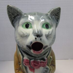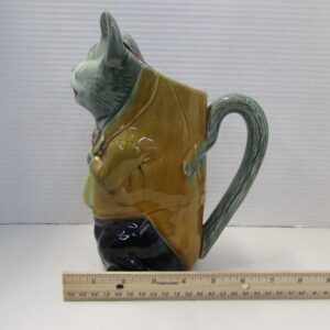 Here’s an antique French majolica cat pitcher.
