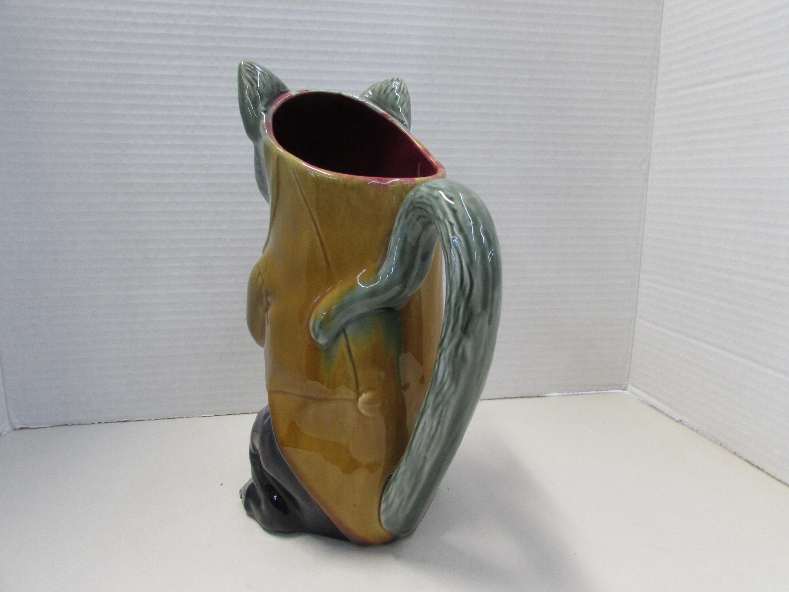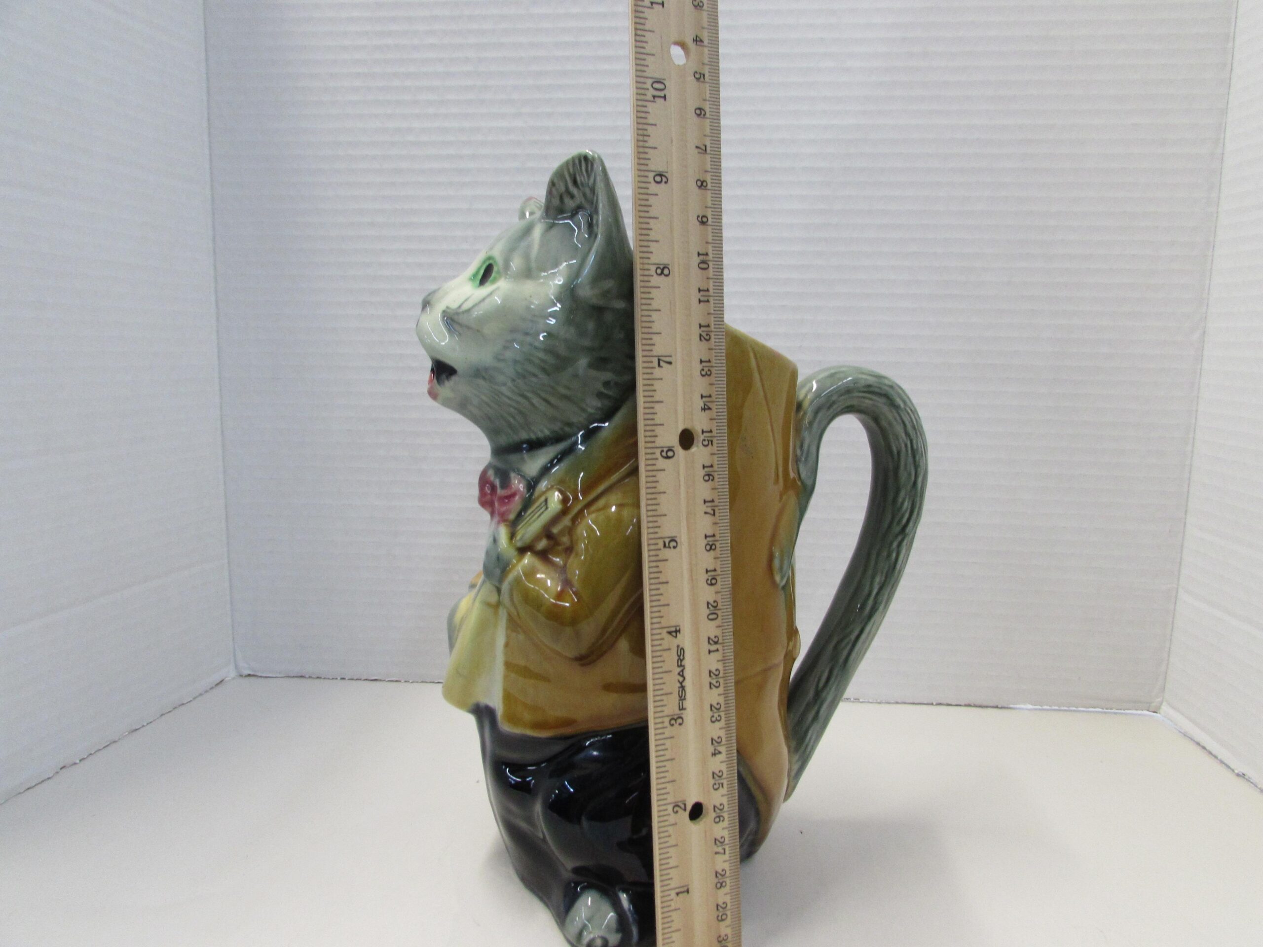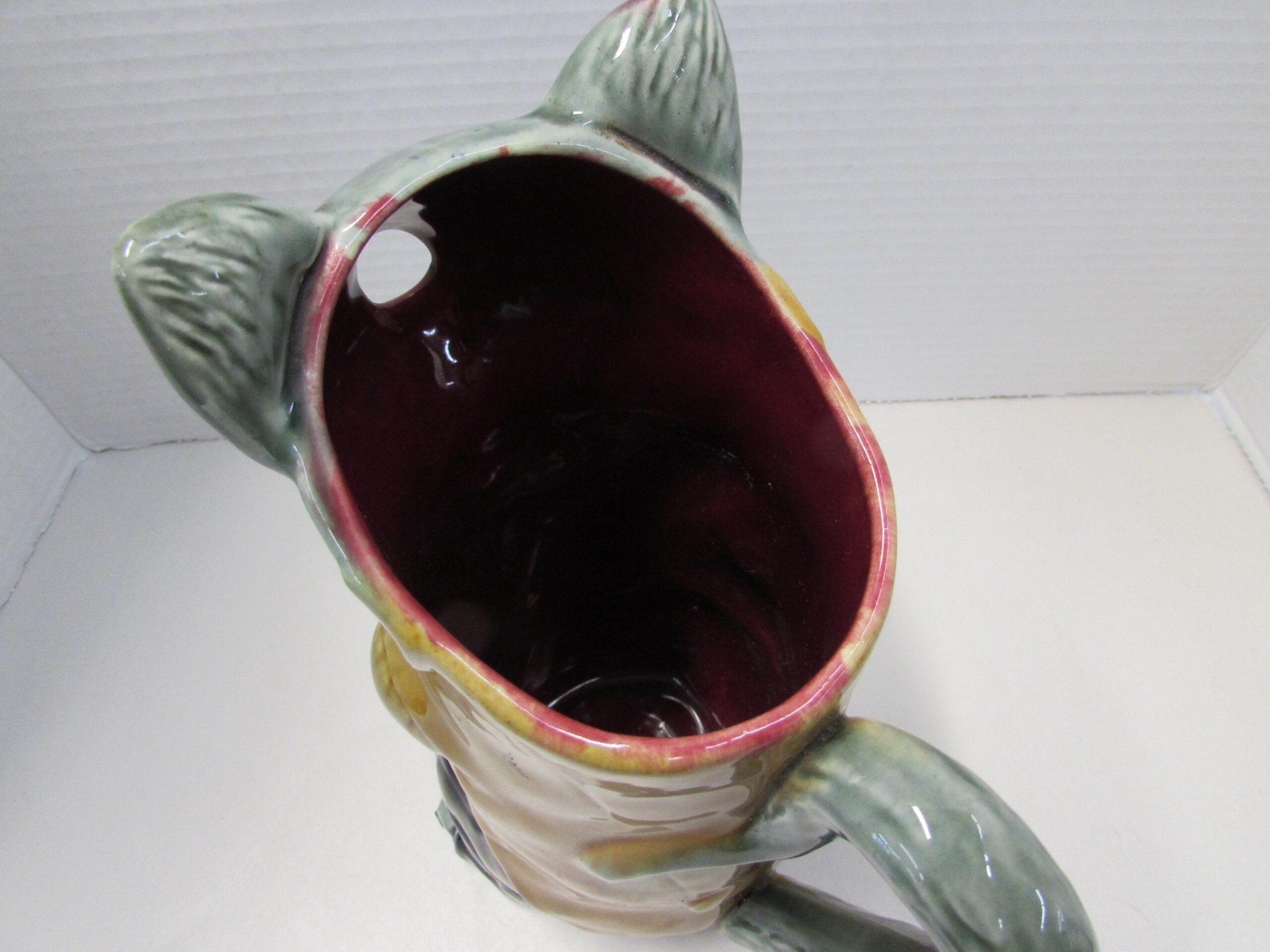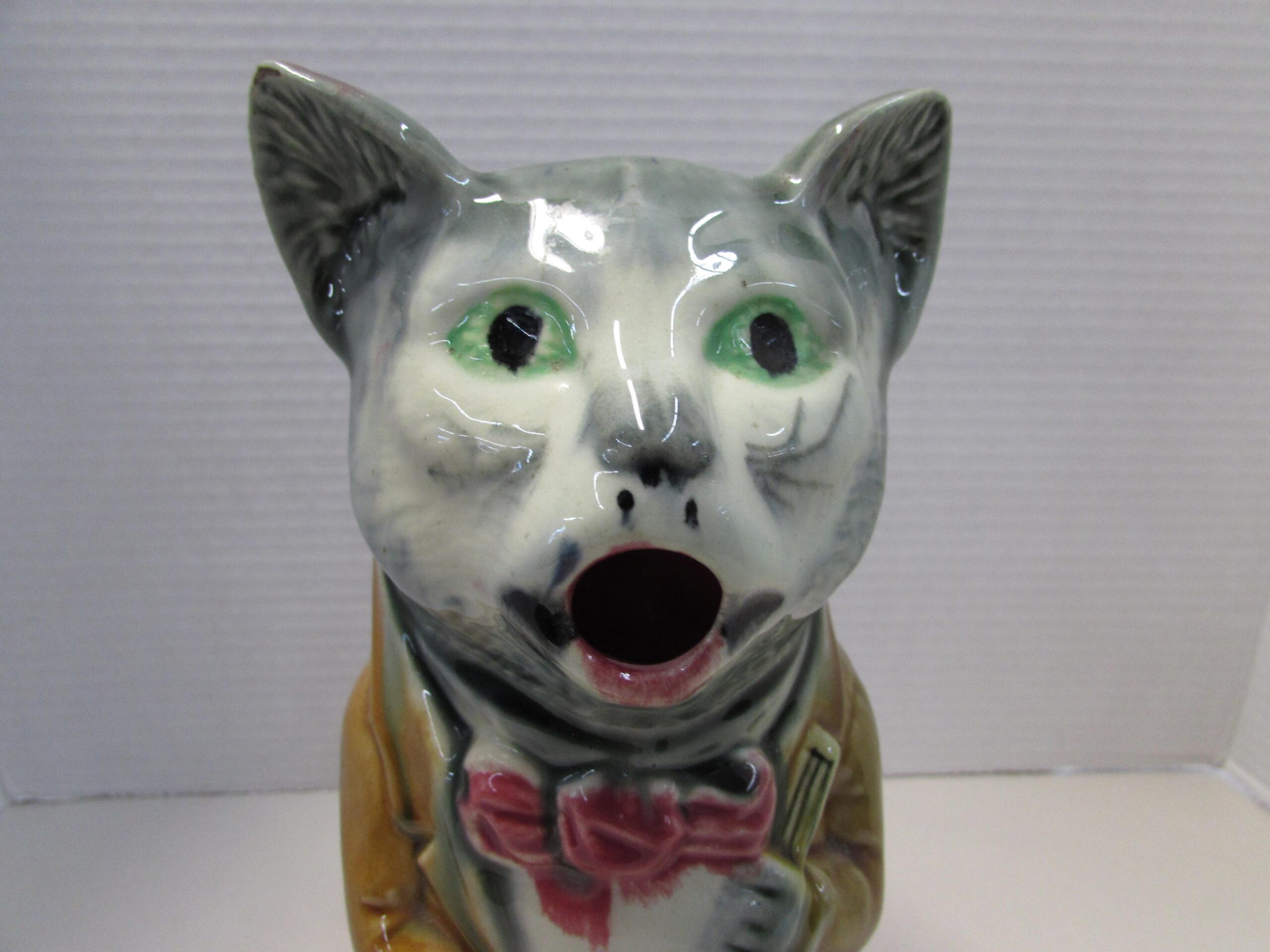 Here’s an antique French majolica cat pitcher.