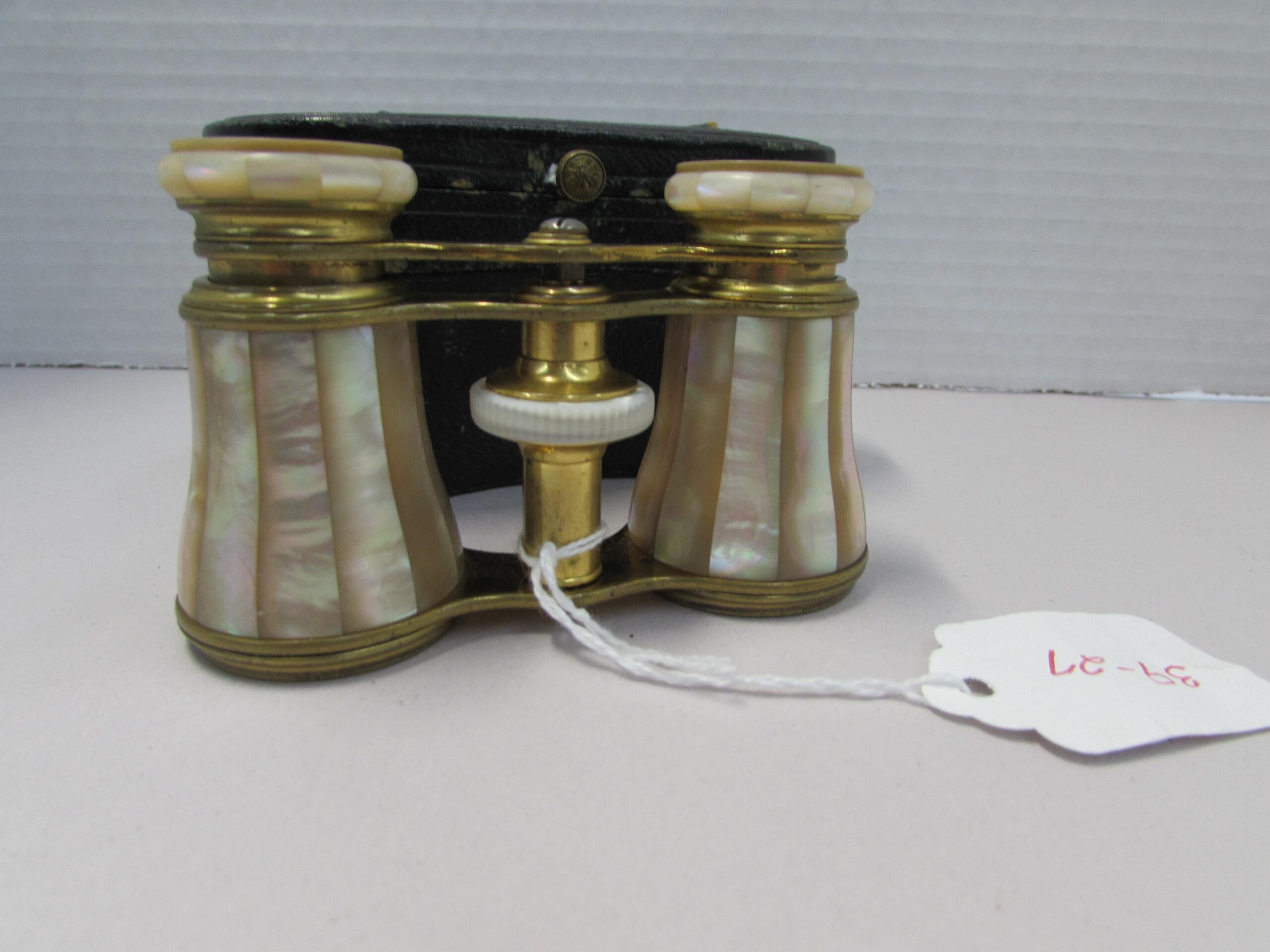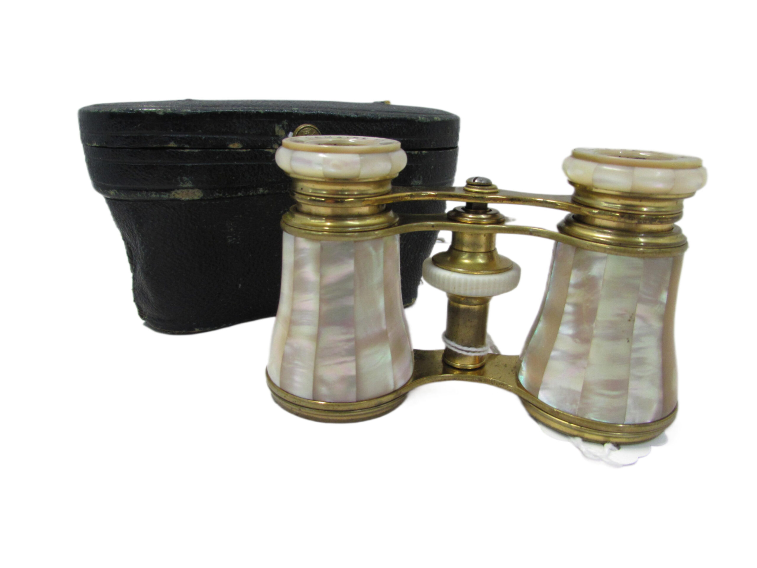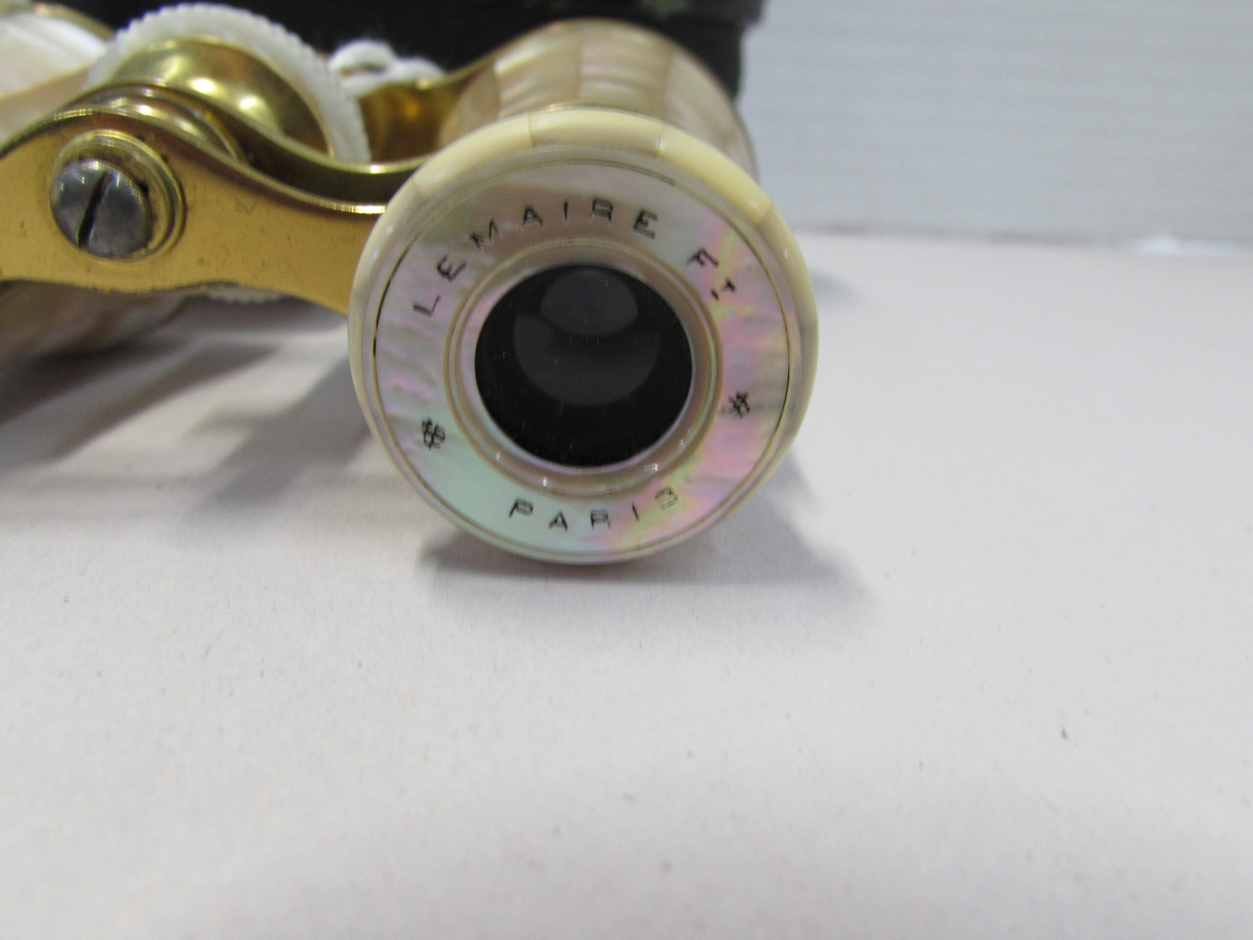 Lemaire Paris mother of pearl opera glasses with black case.