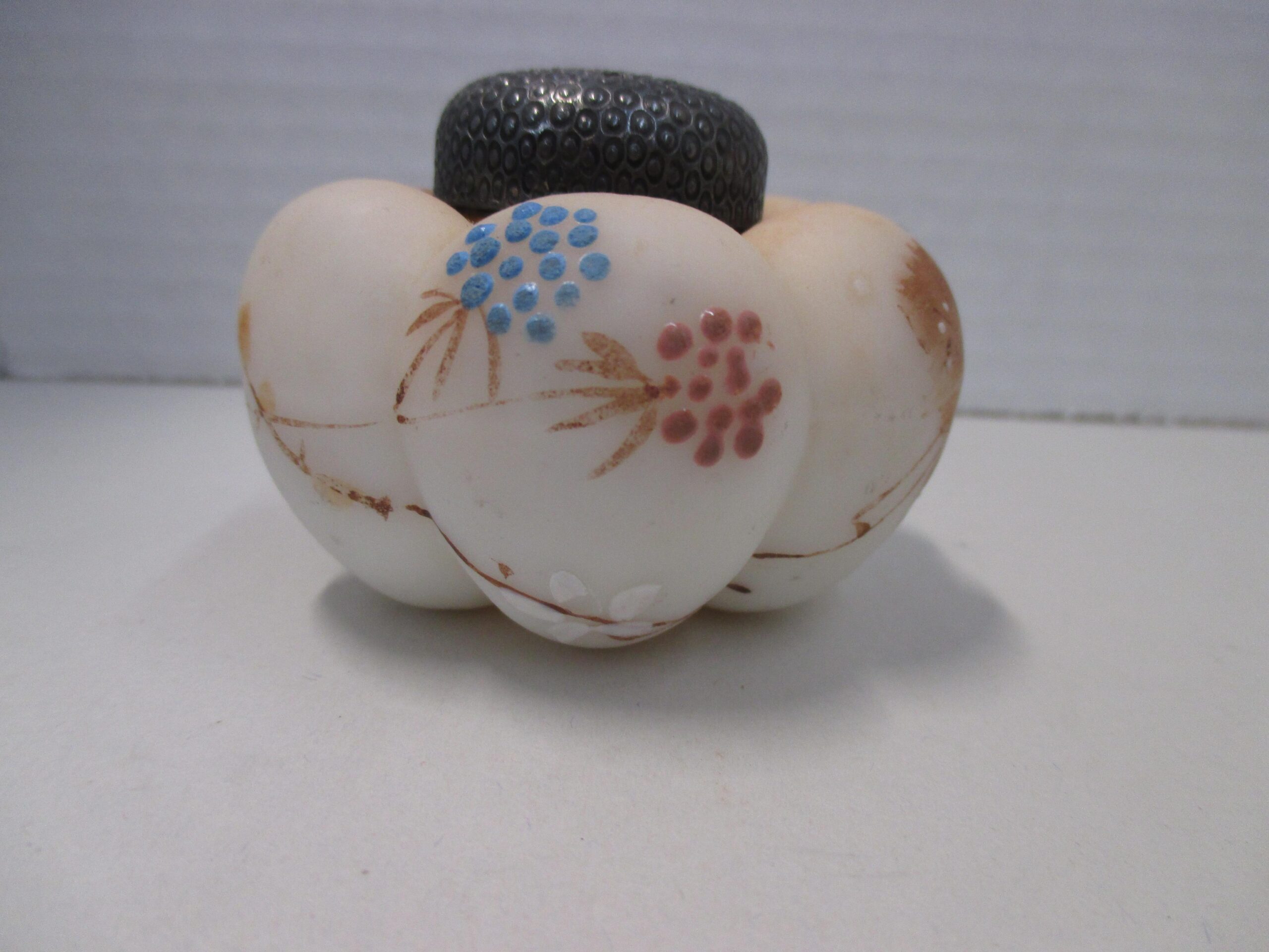 Antique Mt. Washington tomato salt shaker, ivory and peach with hand painted floral.