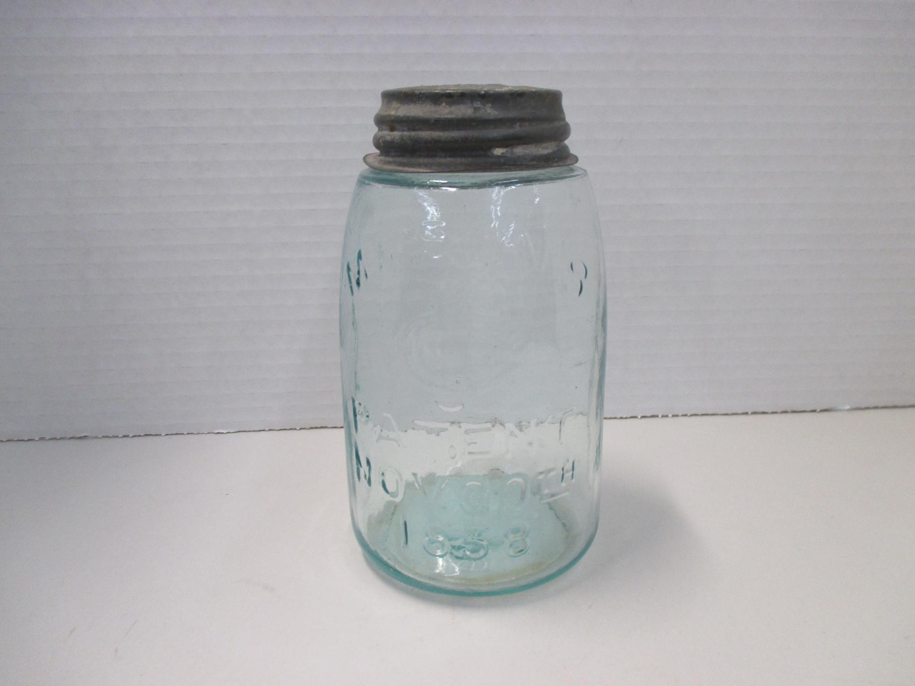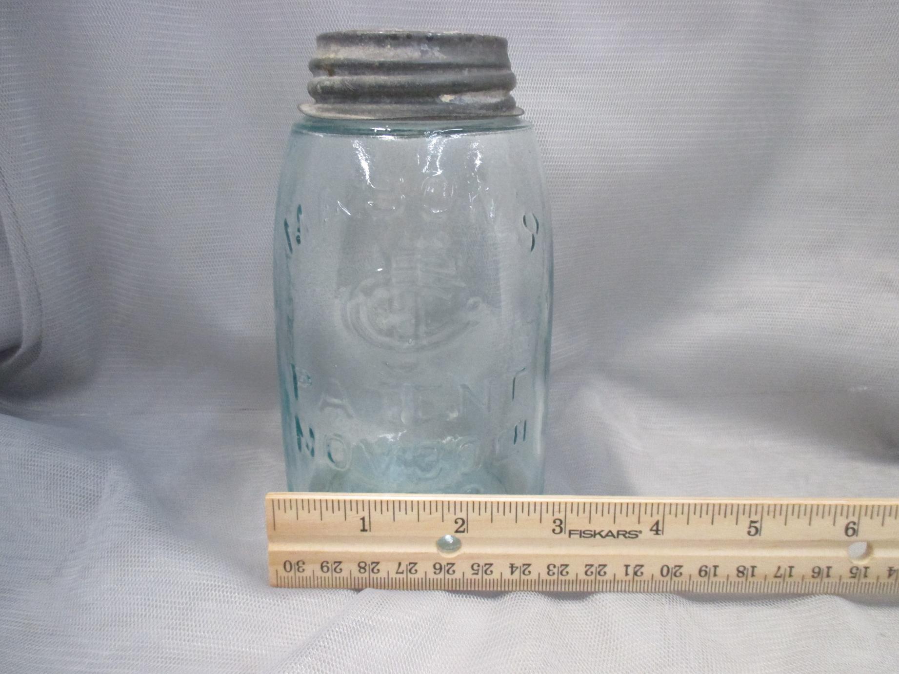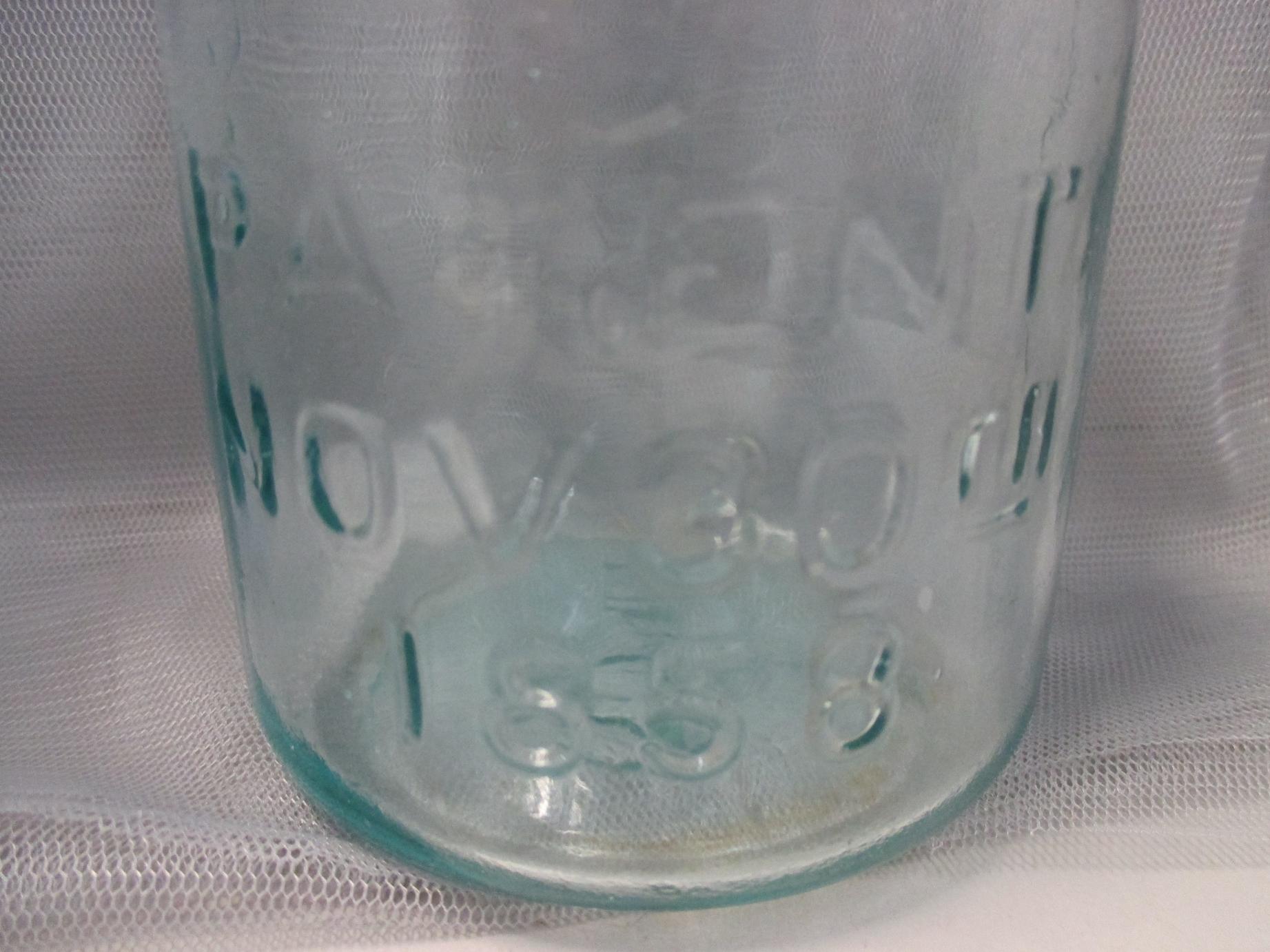 Rare Mason’s pint aquamarine jar, patent November 30, 1858.