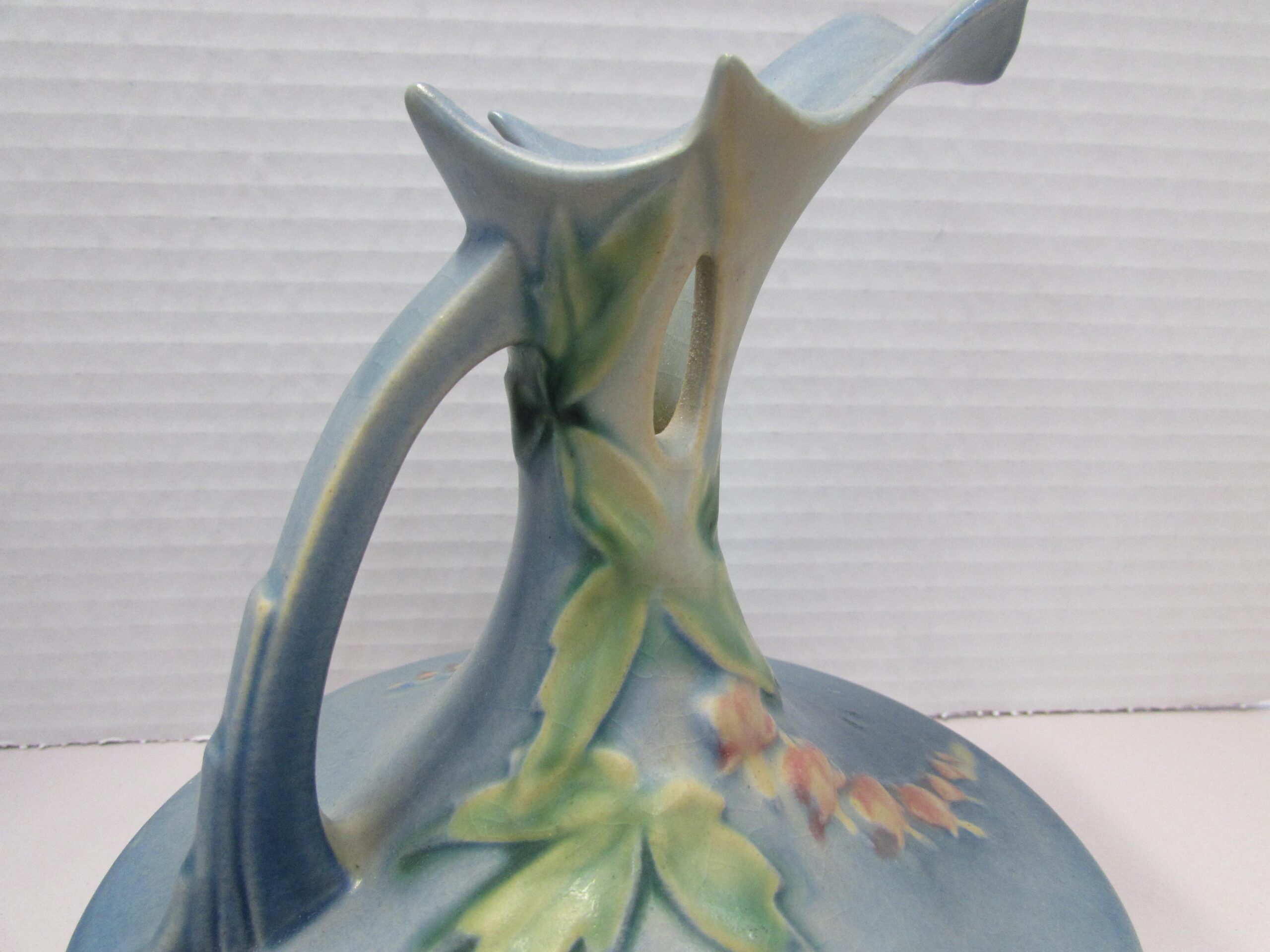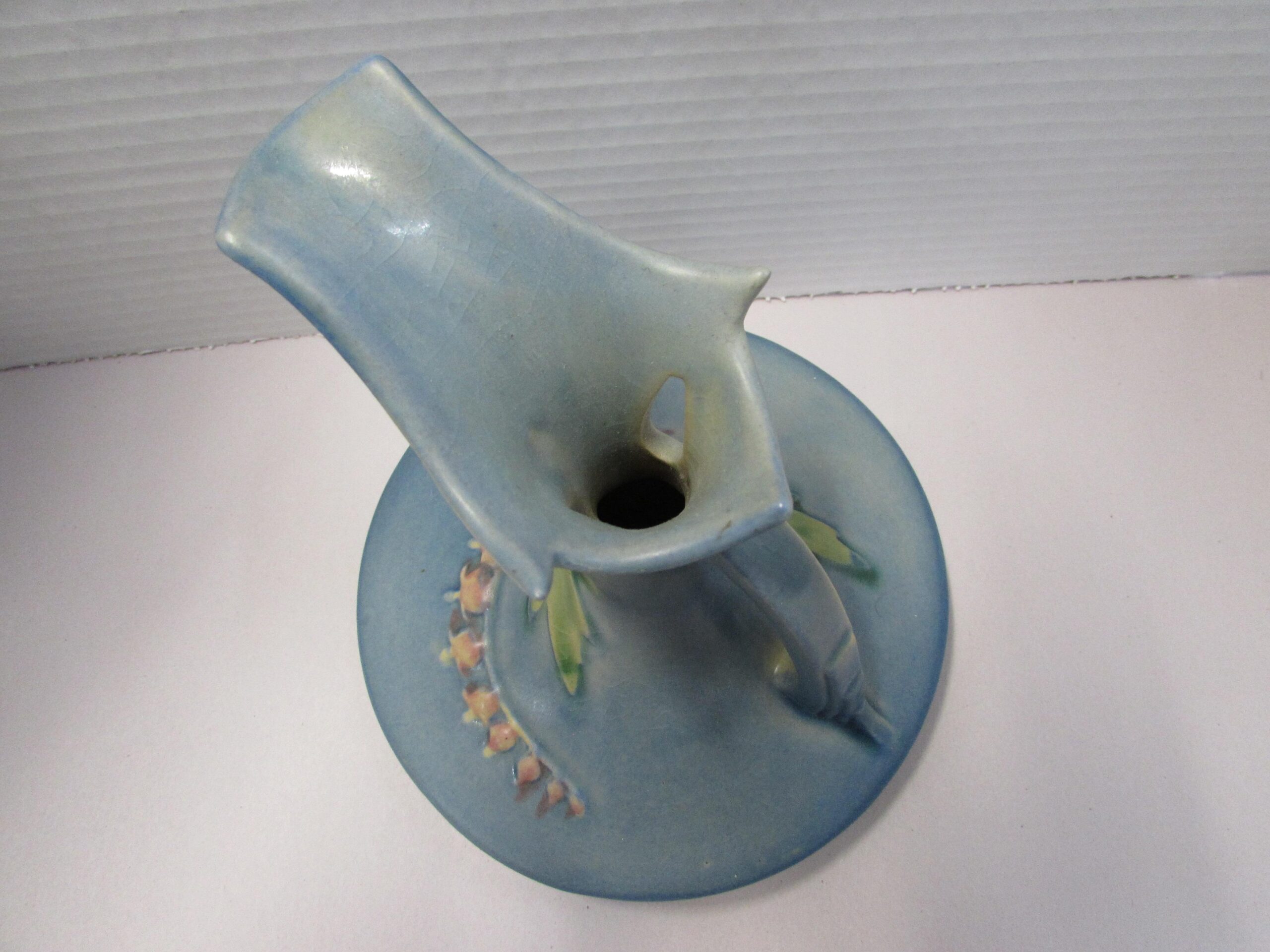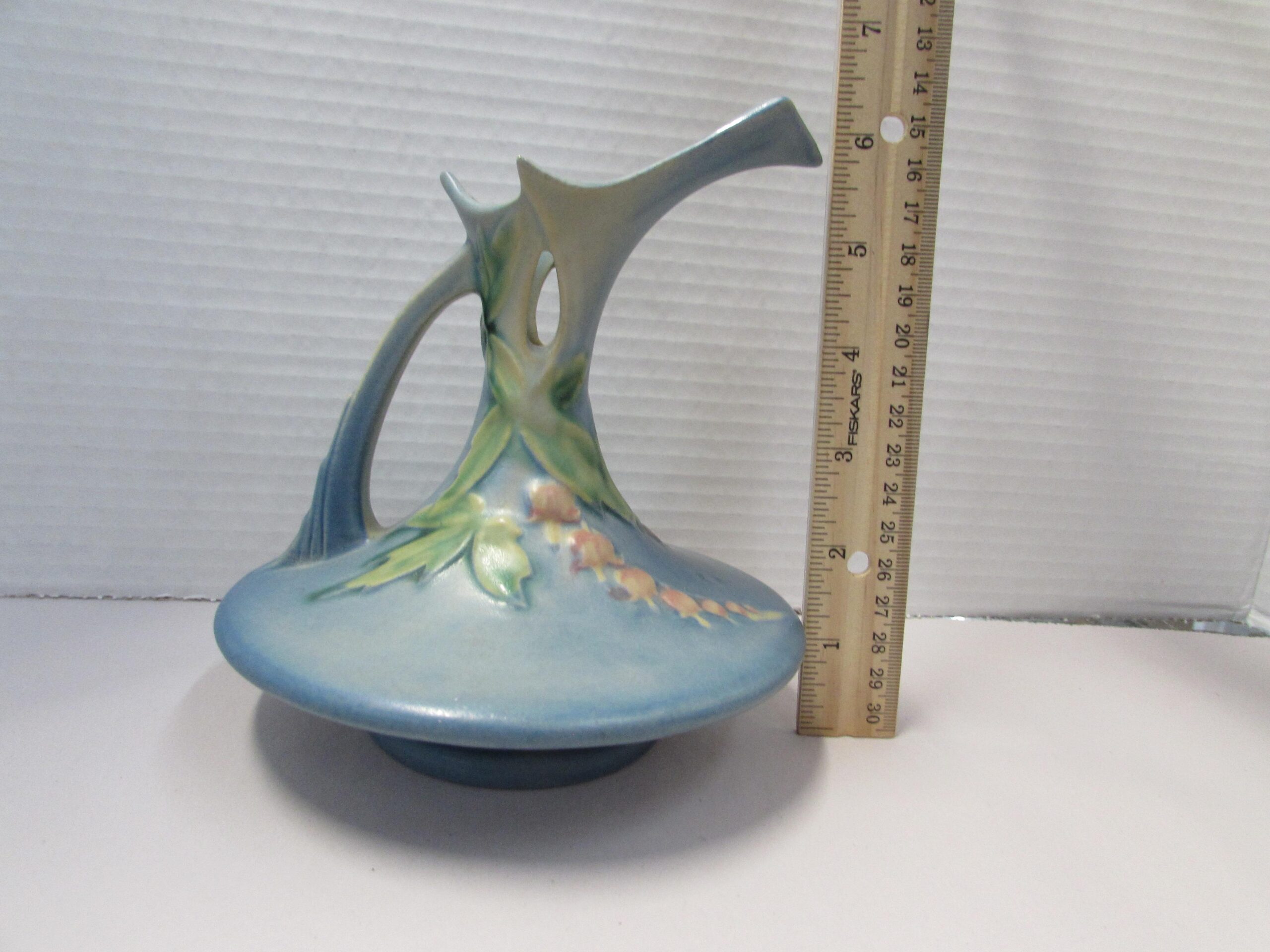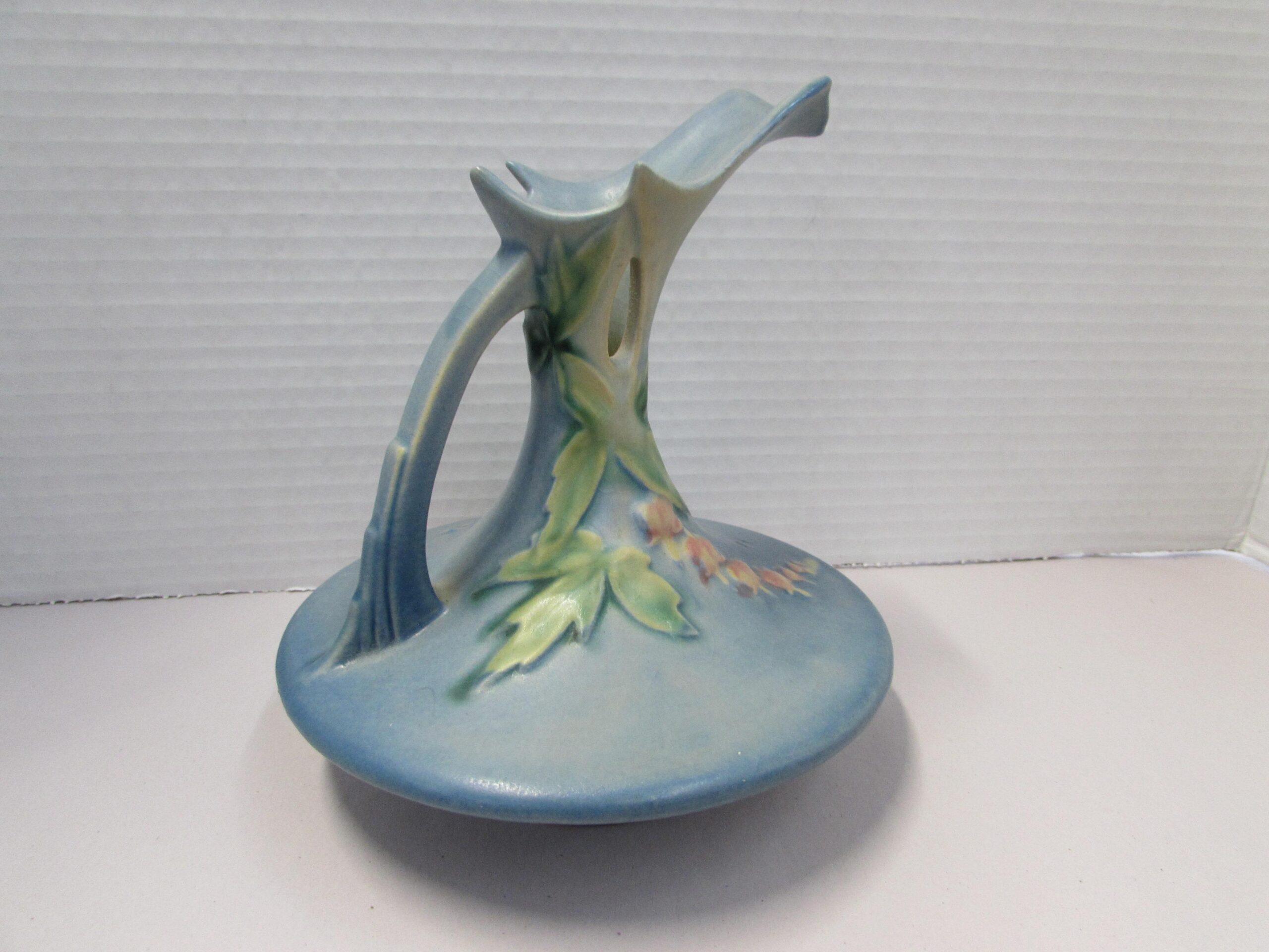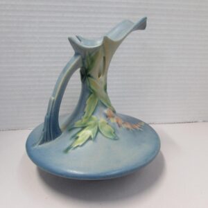 Antique Weller Pottery “Cameo Rose” Blue Basket Vase