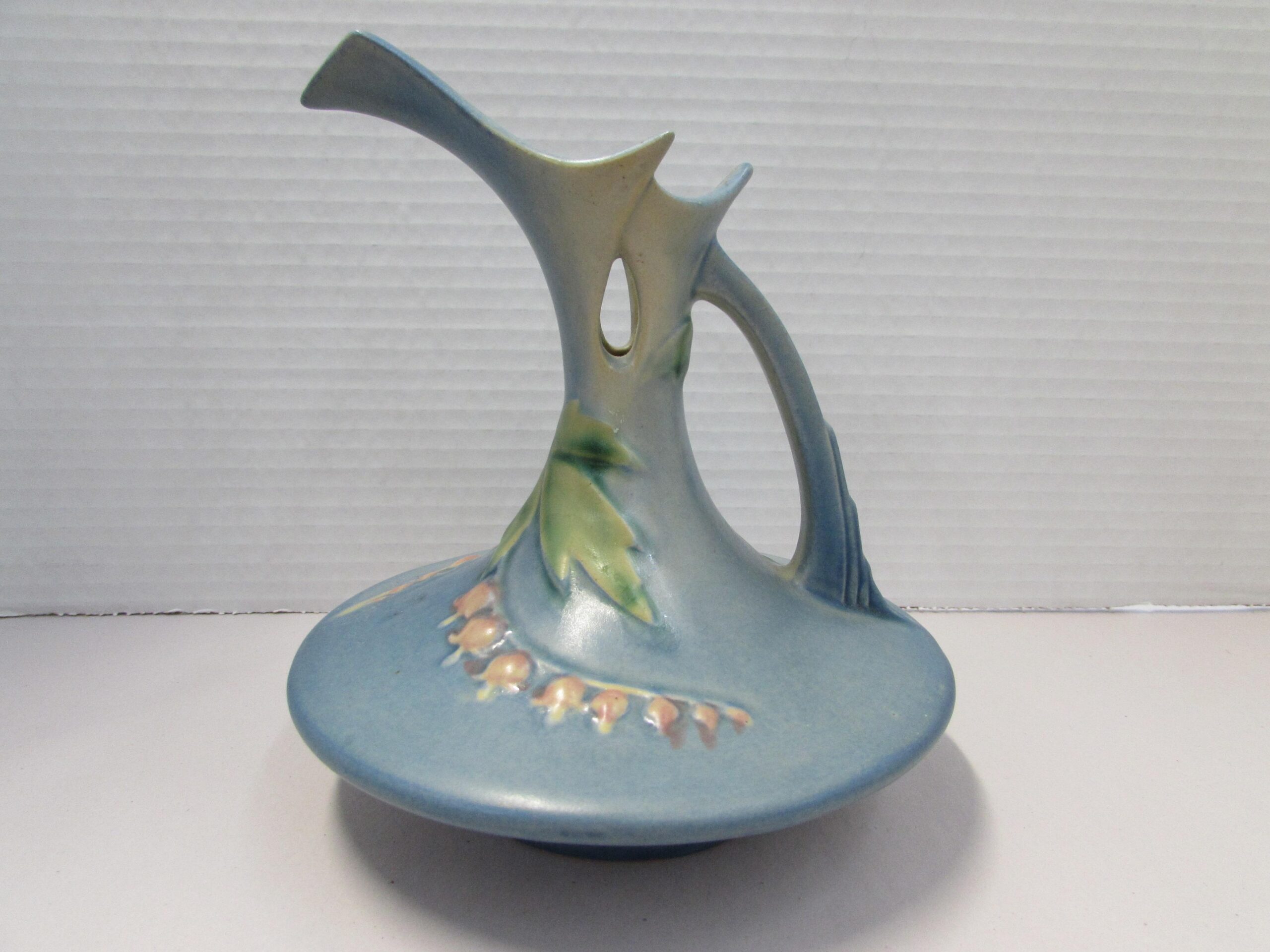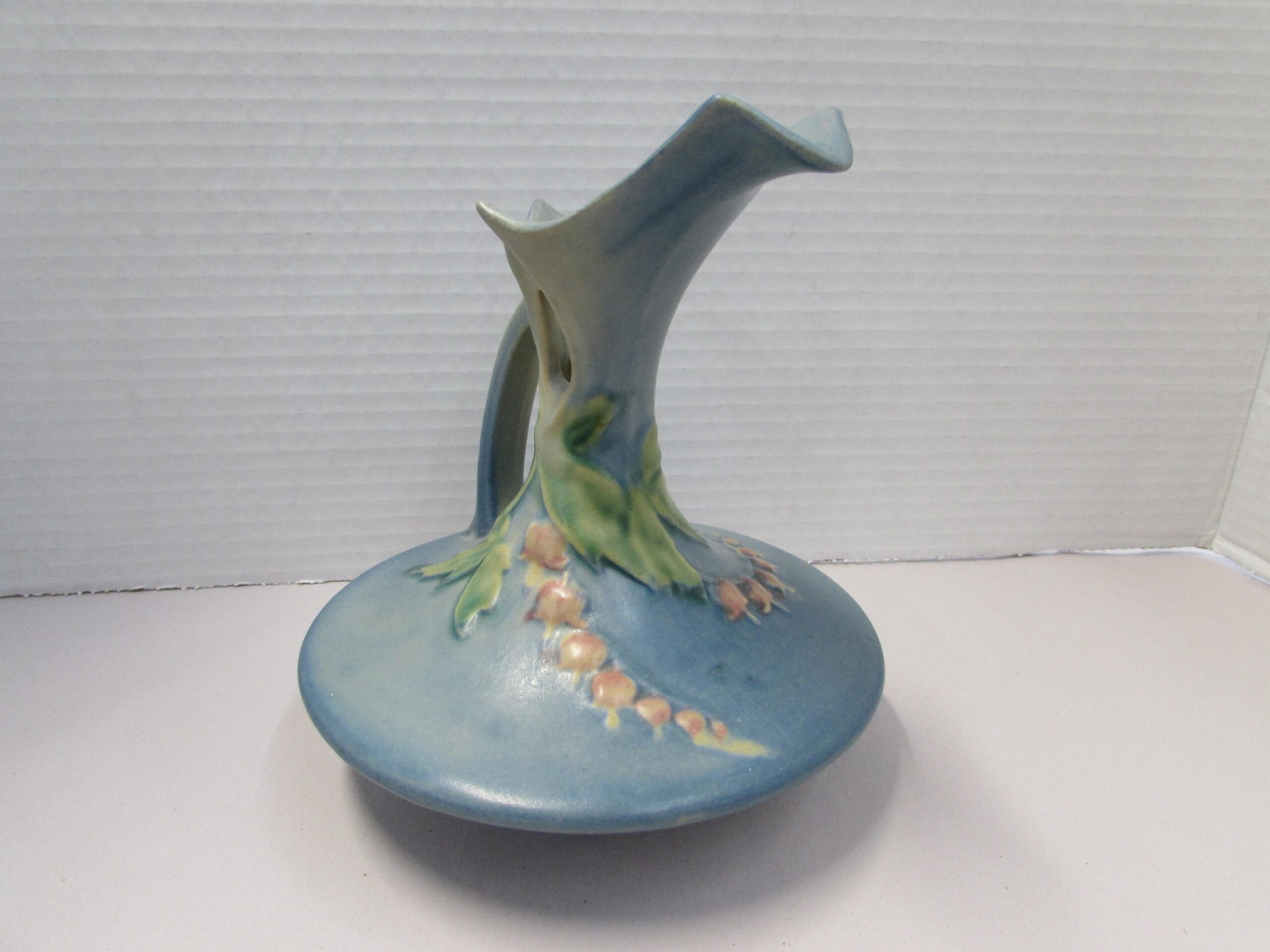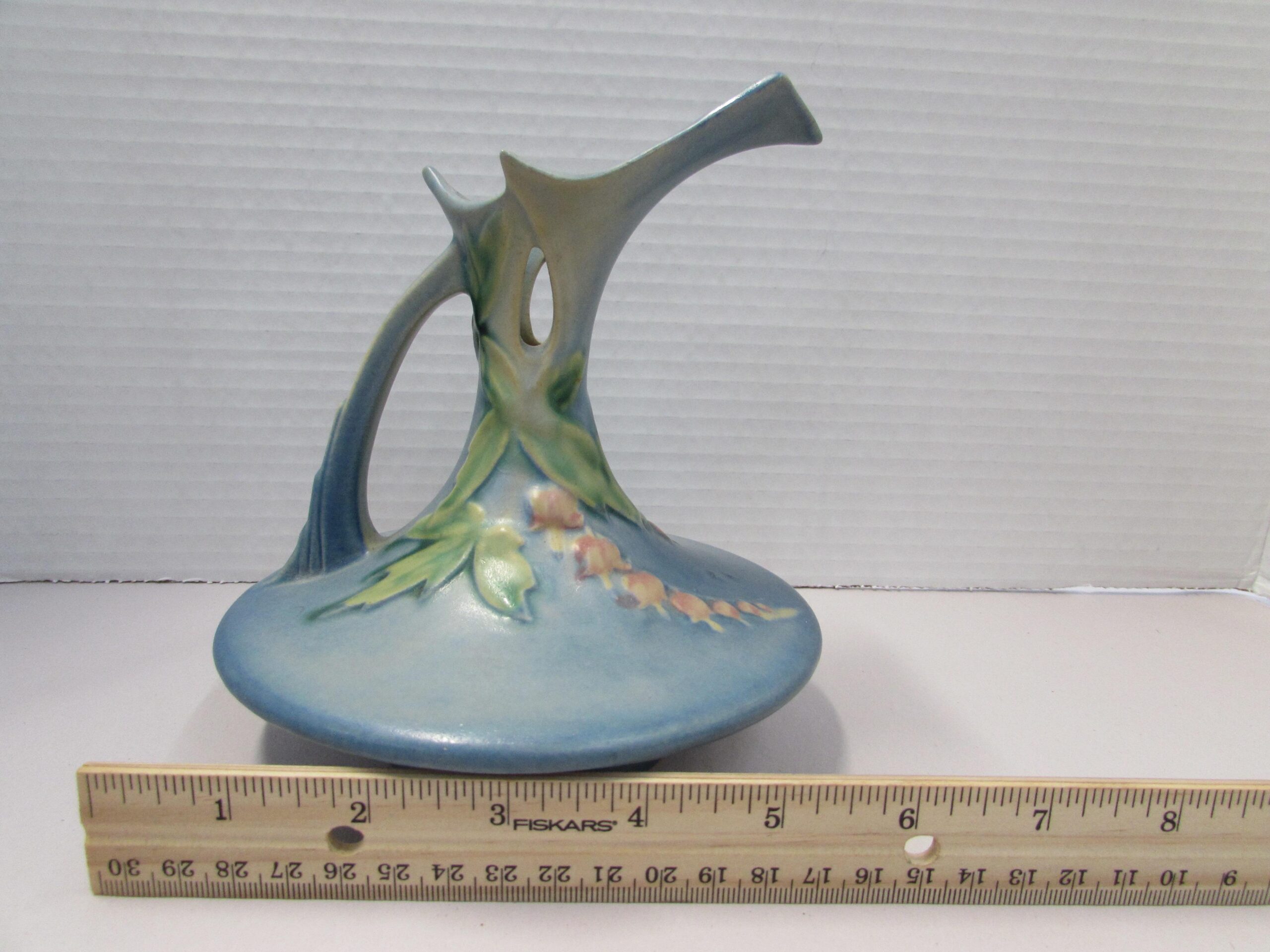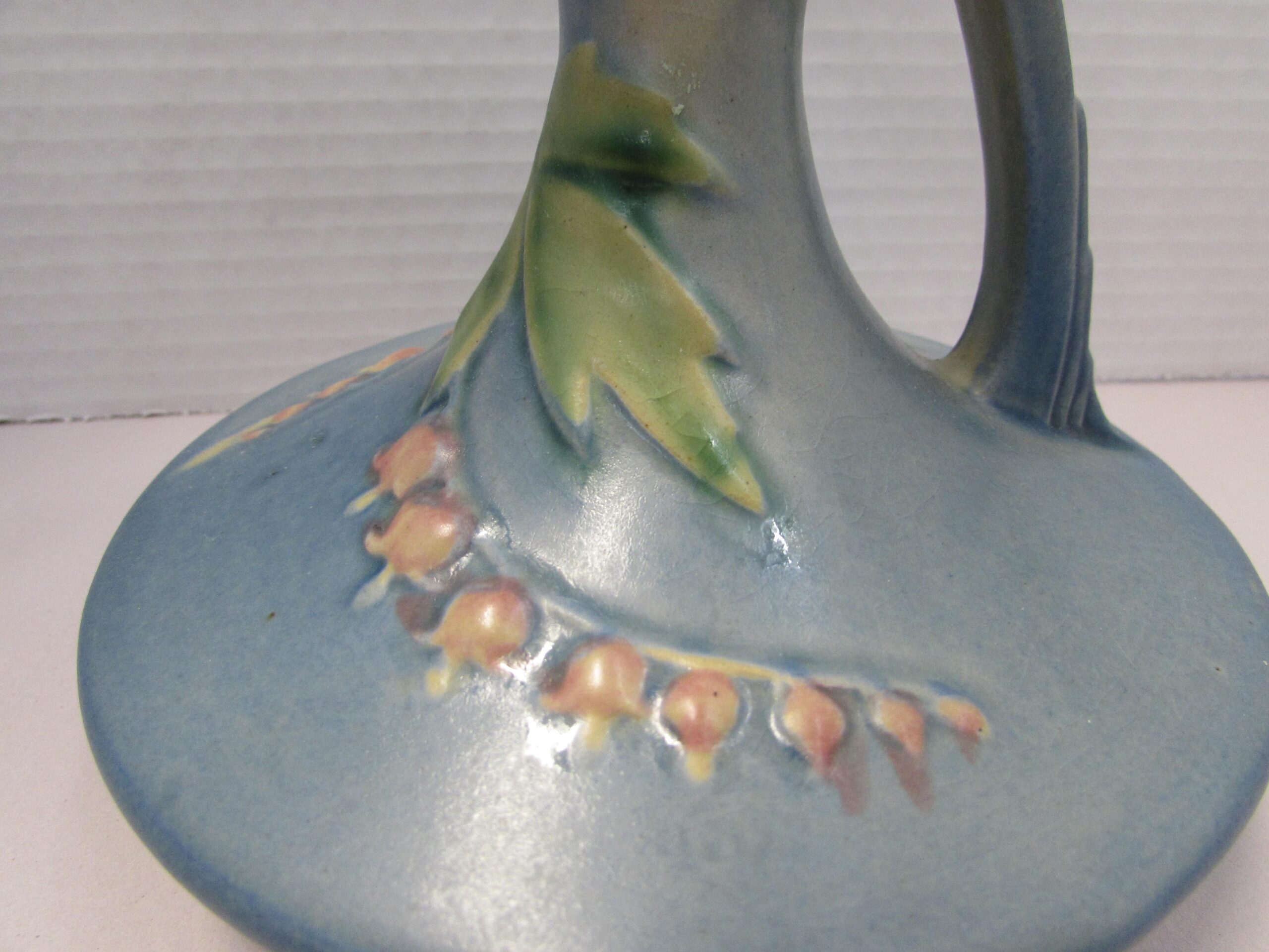 Antique Weller Pottery “Cameo Rose” Blue Basket Vase