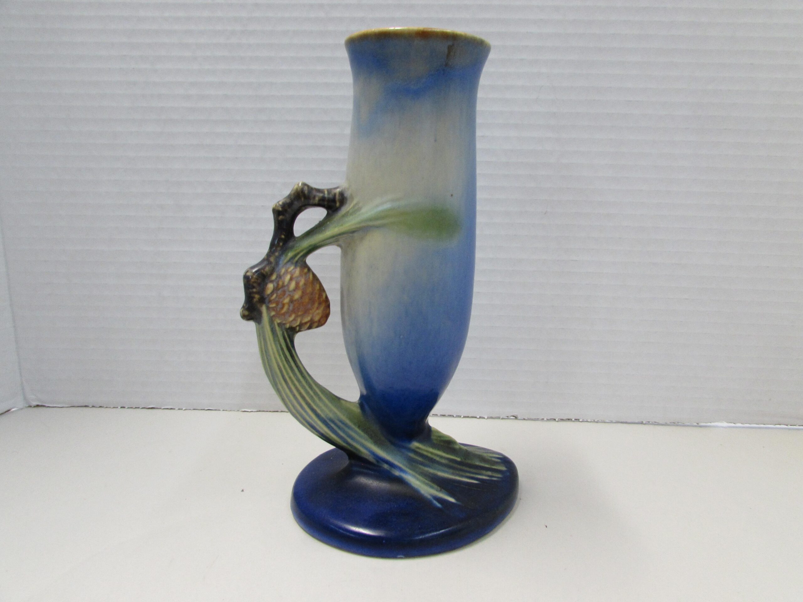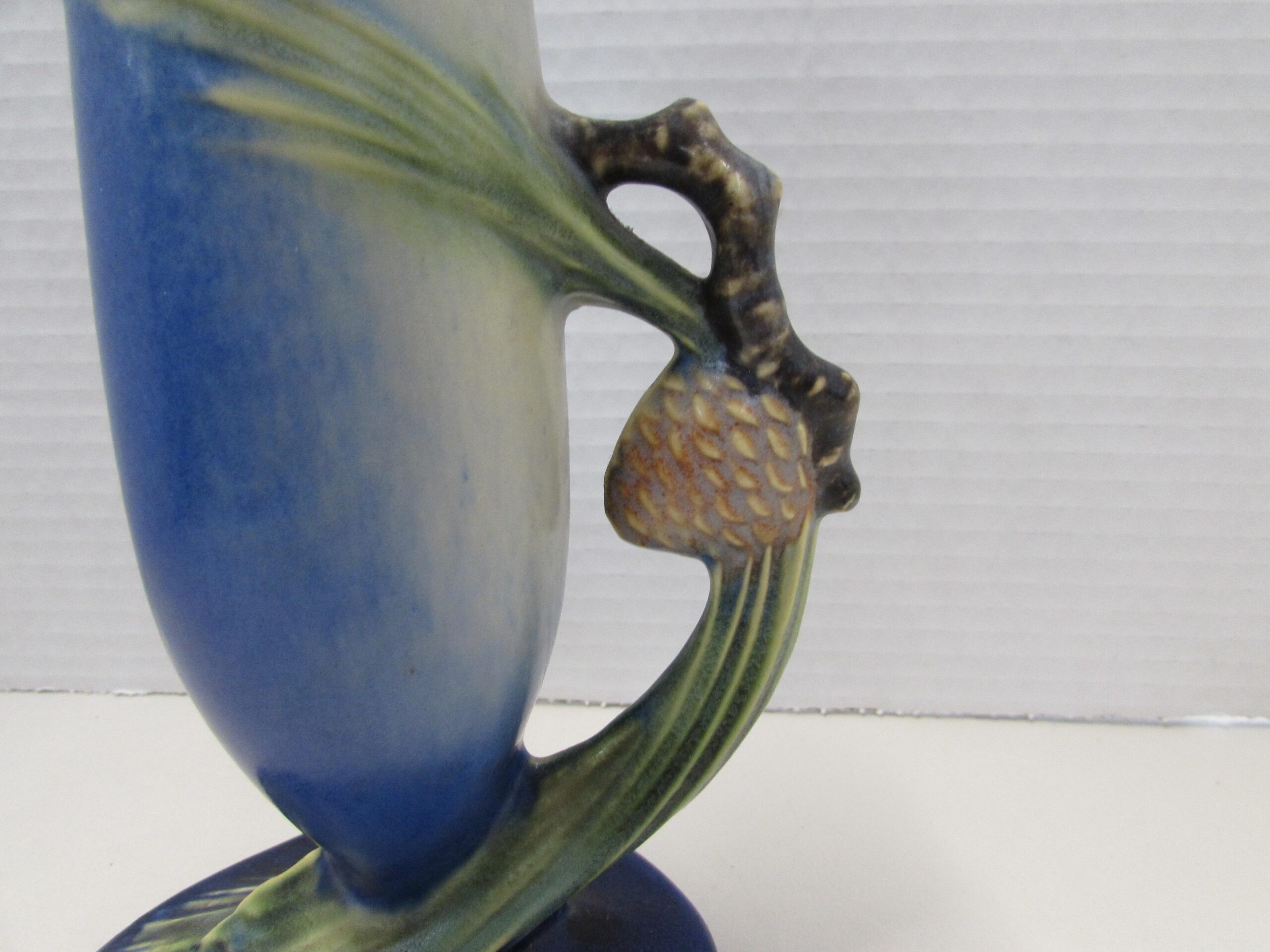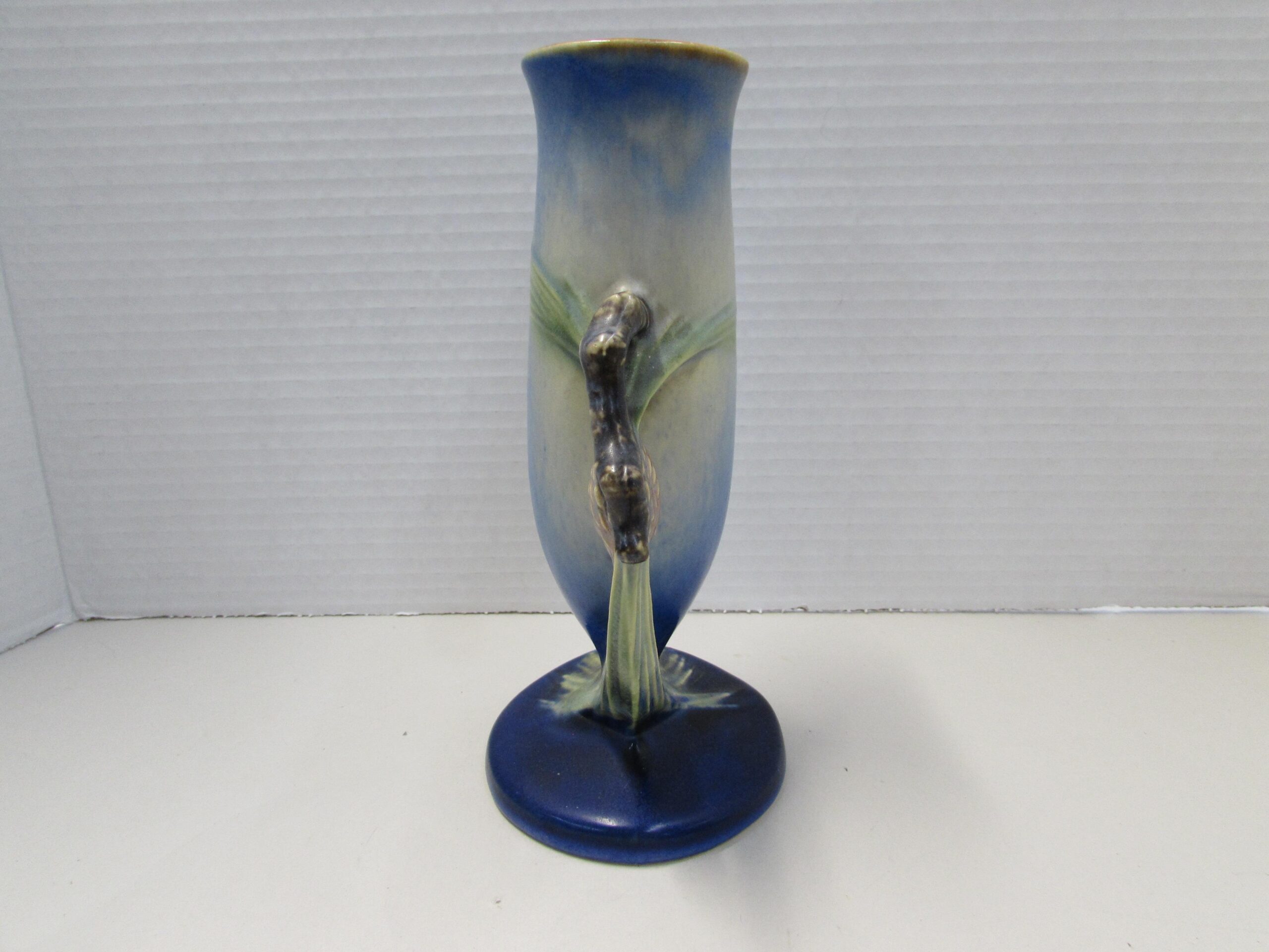 Beautiful Roseville cobalt blue 7″ bud vase.