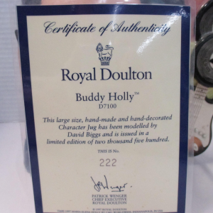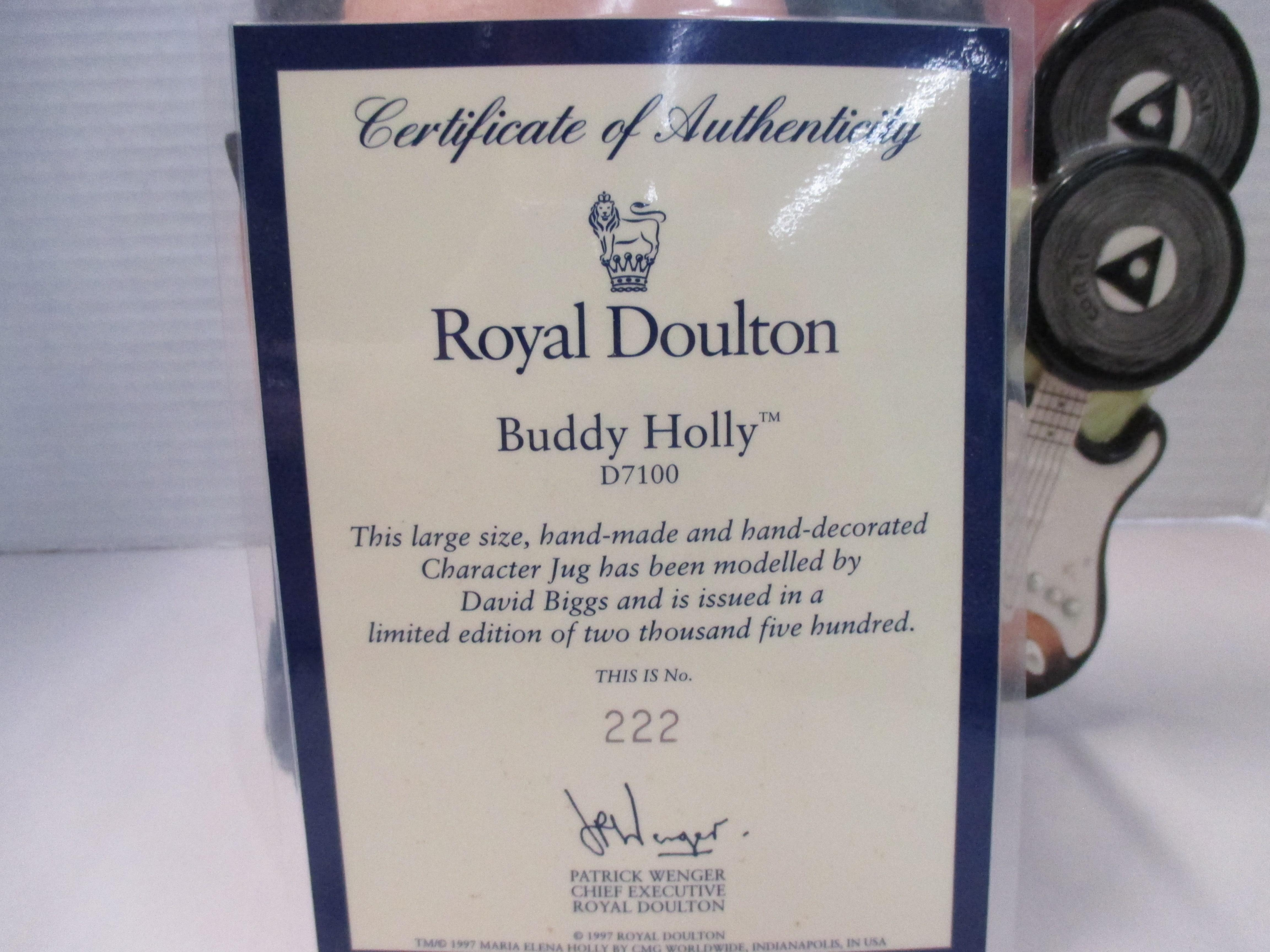 Royal Doulton Buddy Holly character jug, with certificate of authenticity.