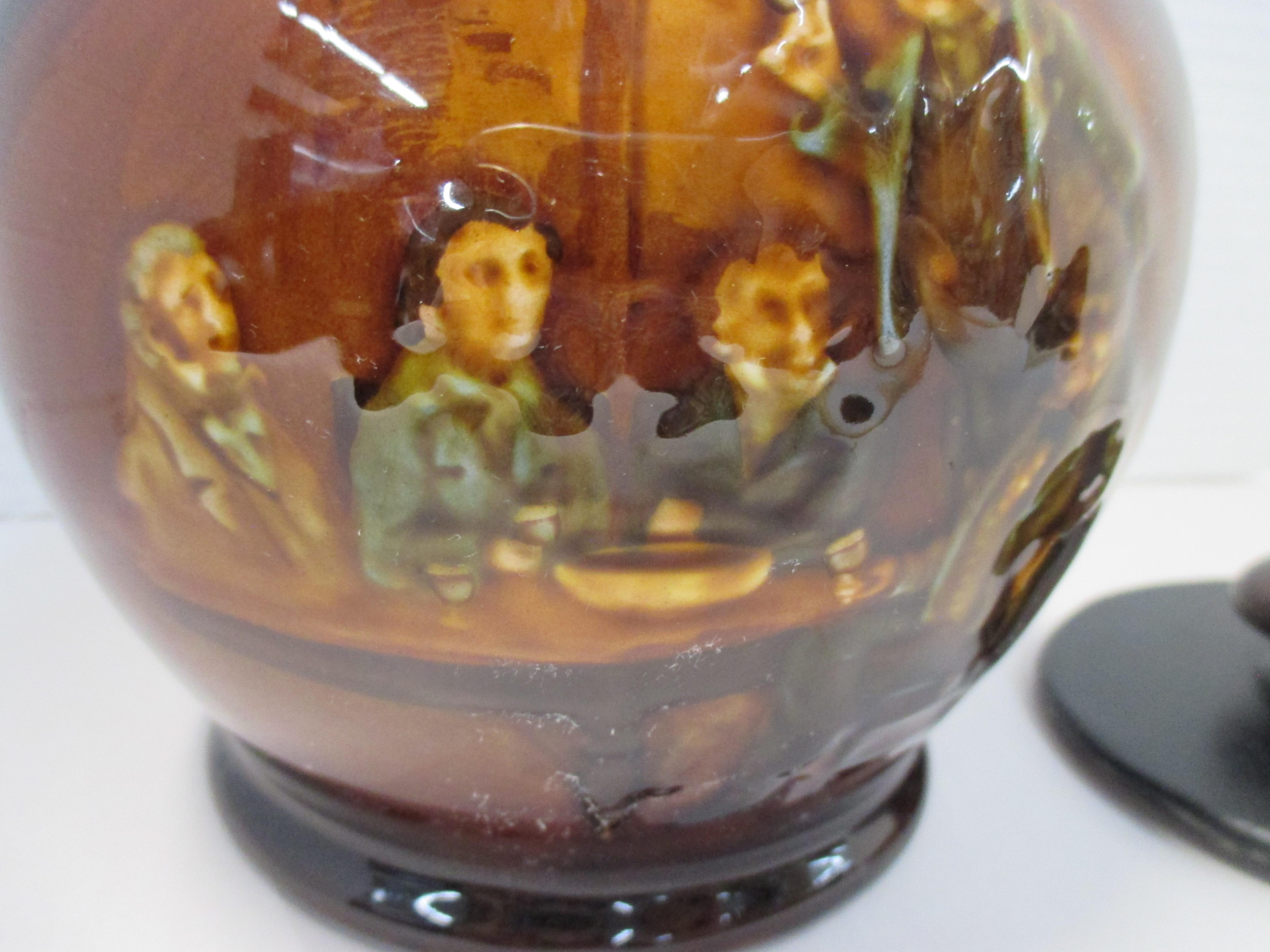 Royal Doulton Kingsware tobacco jar with Mr. Pickwick proposing a toast. Circa 1898-1939.