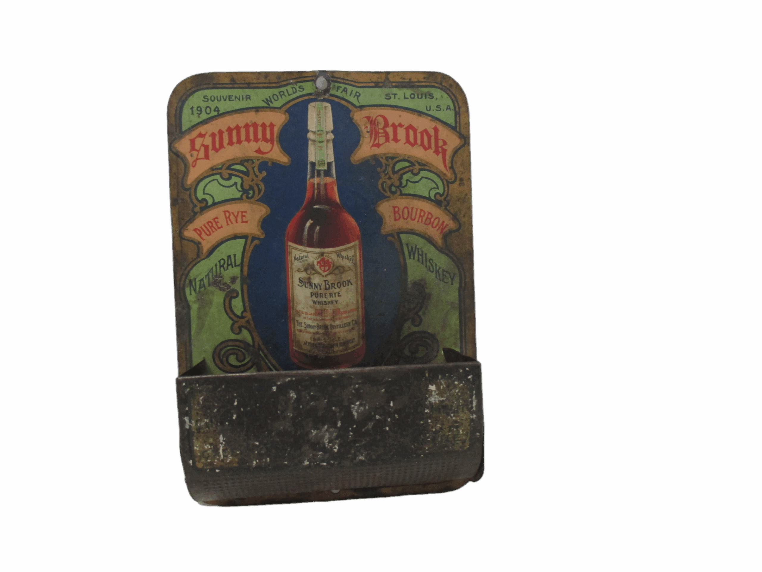 Rare 1904 St. Louis World’s Fair Sunny Brook Whiskey advertising tin match holder.