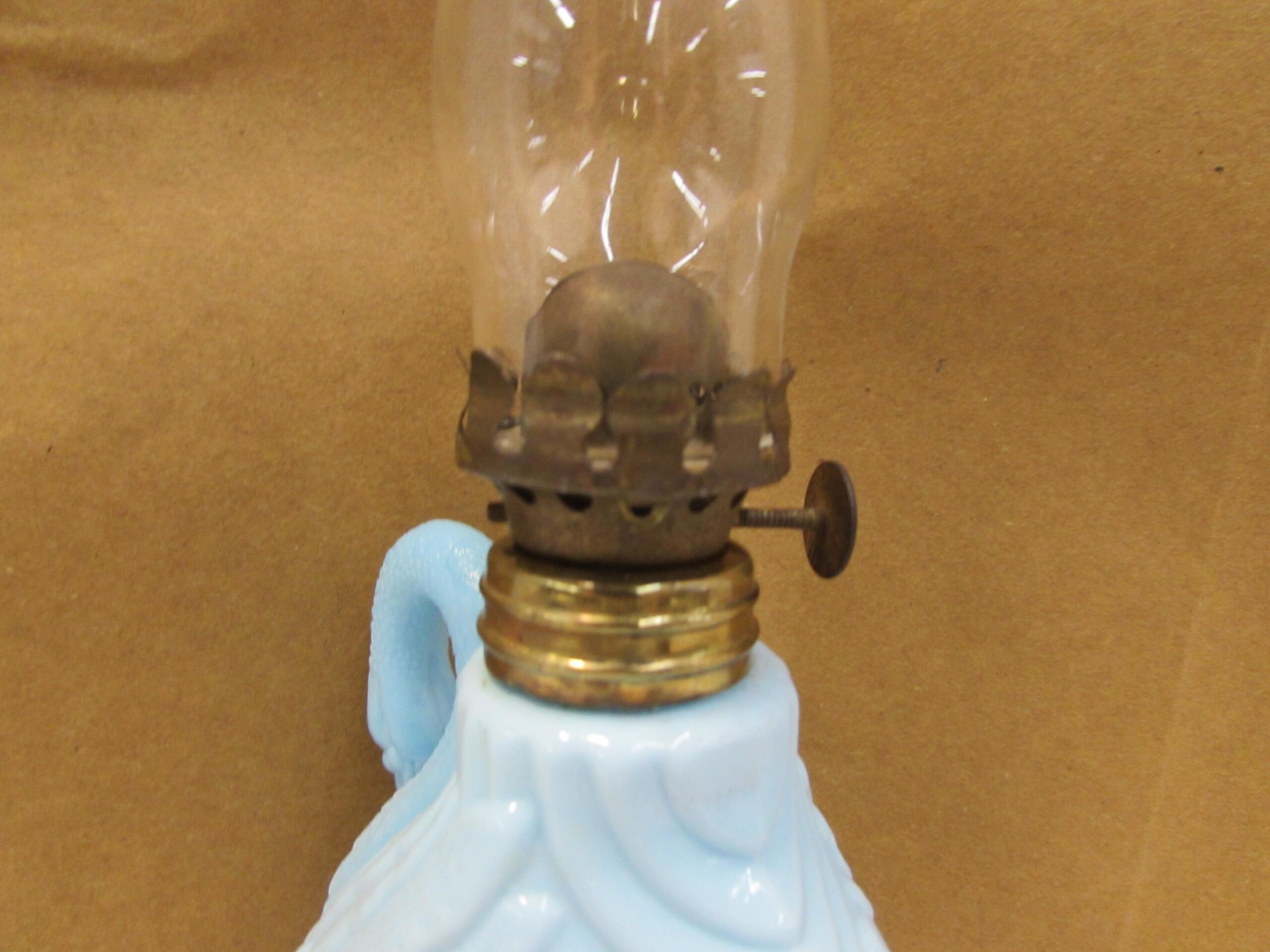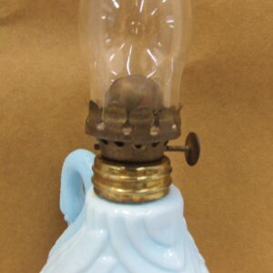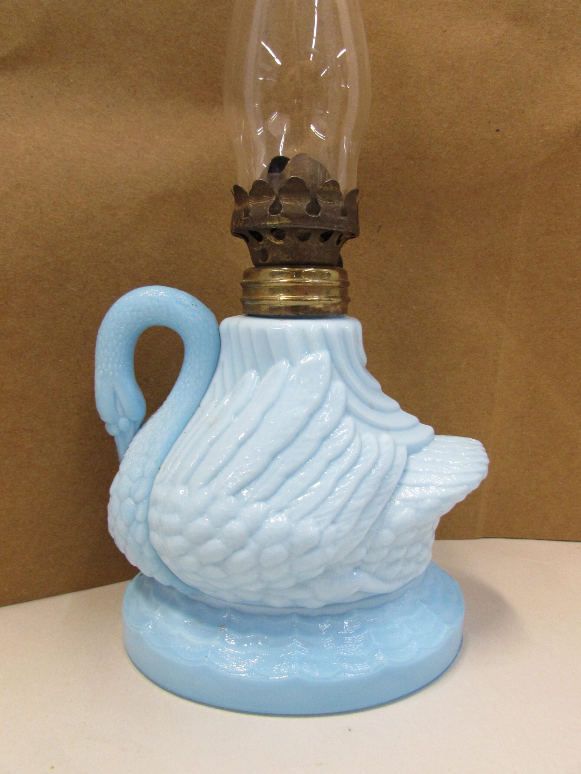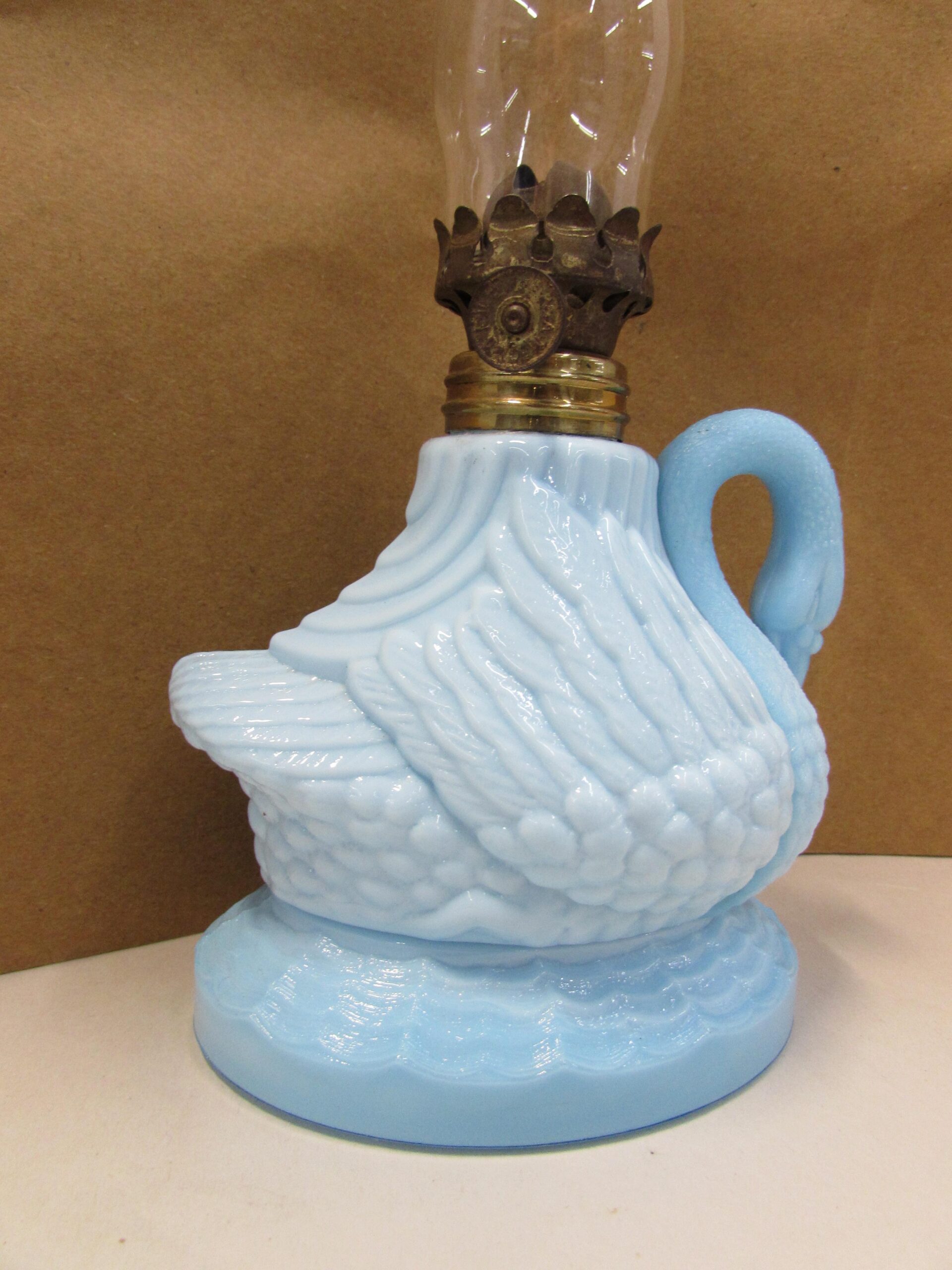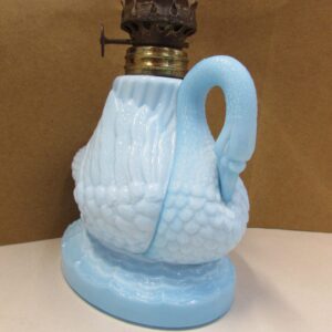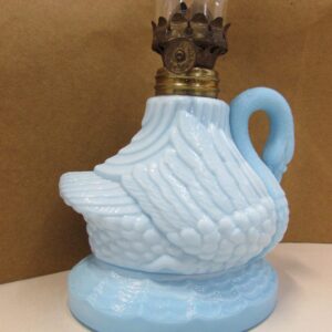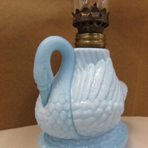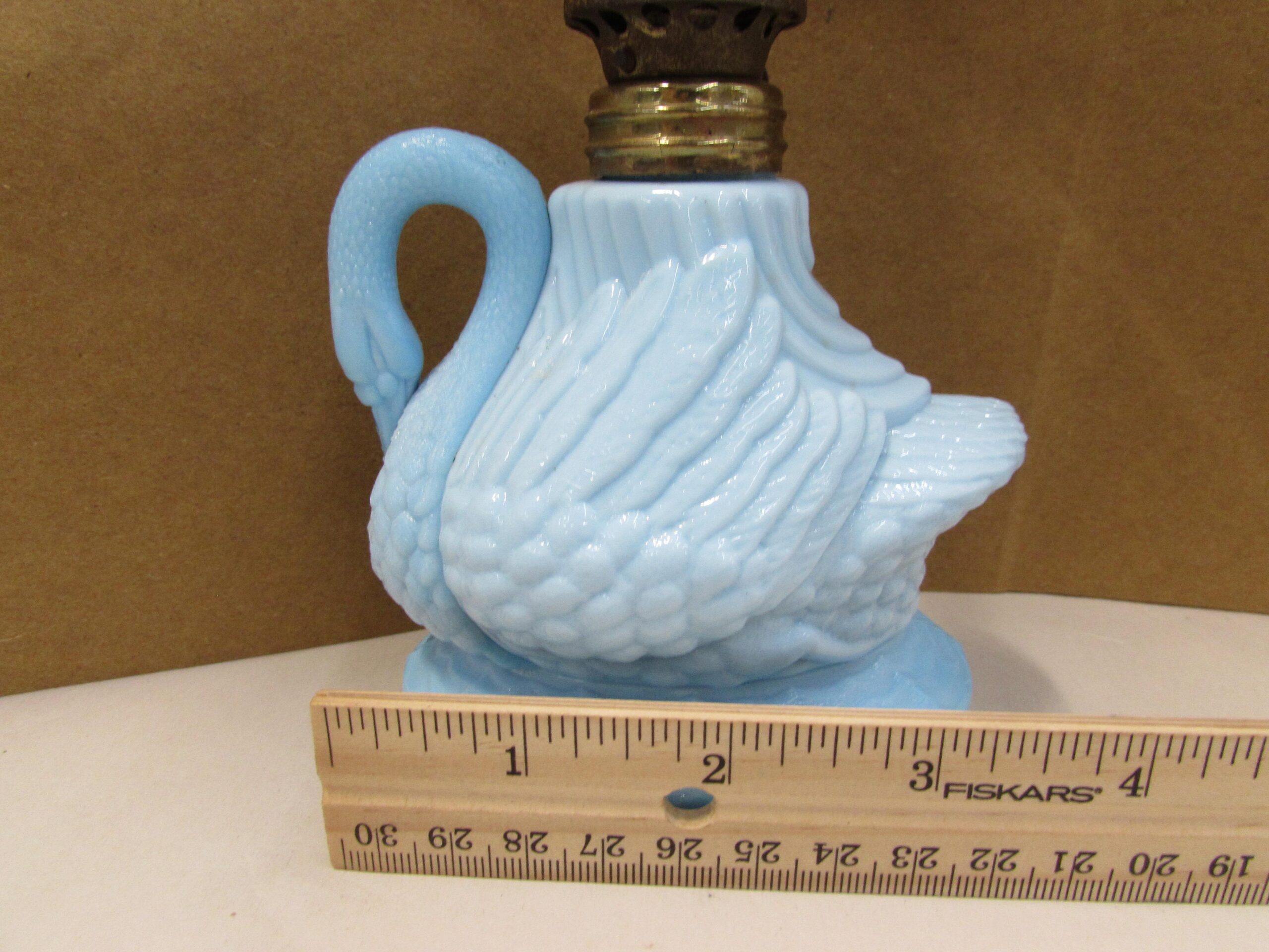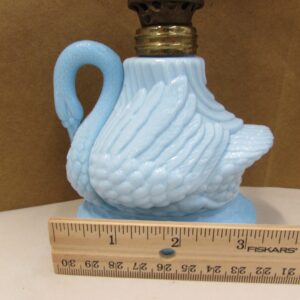 Very rare antique swan mini oil lamp, blue milk glass, circa 1800’s.