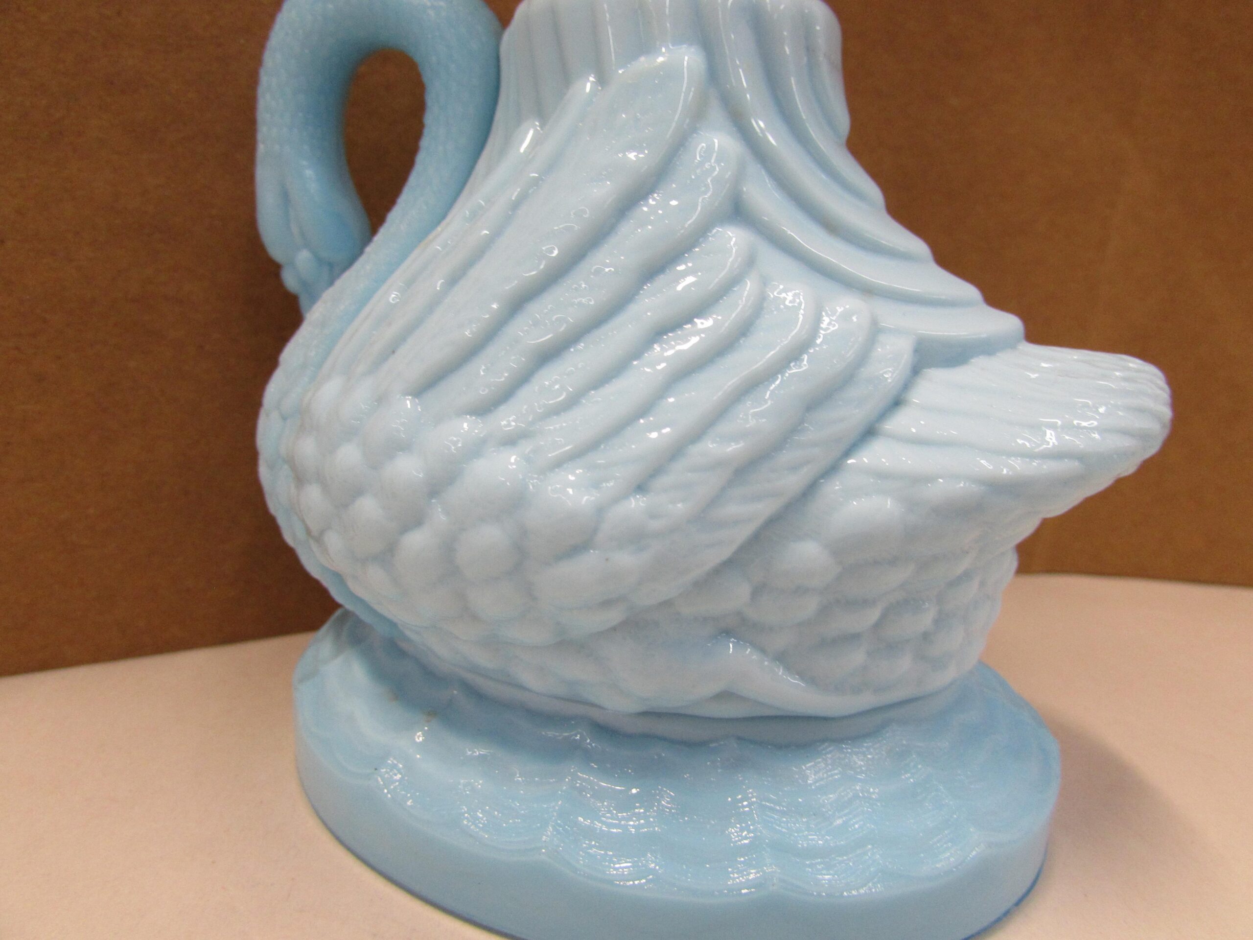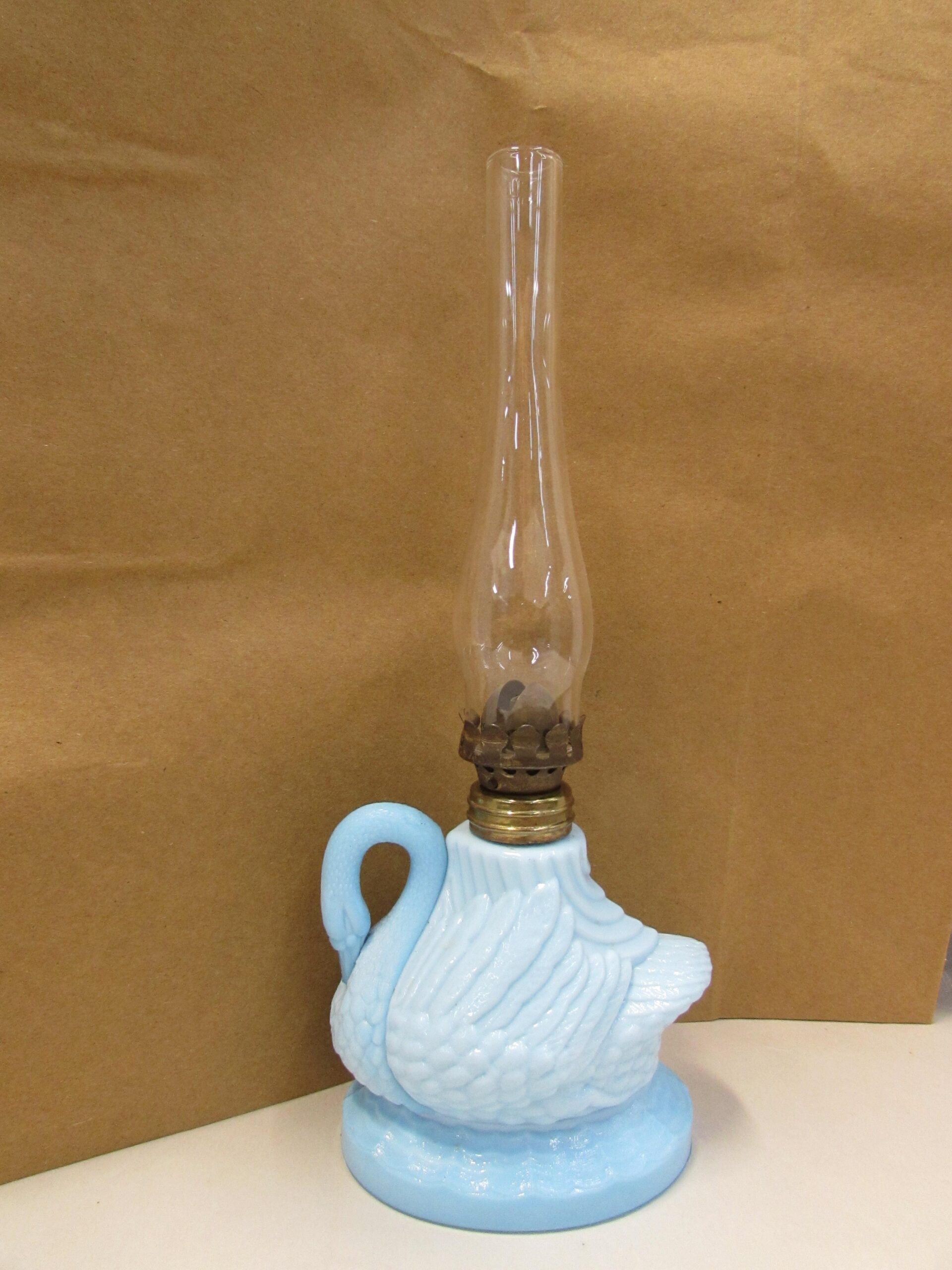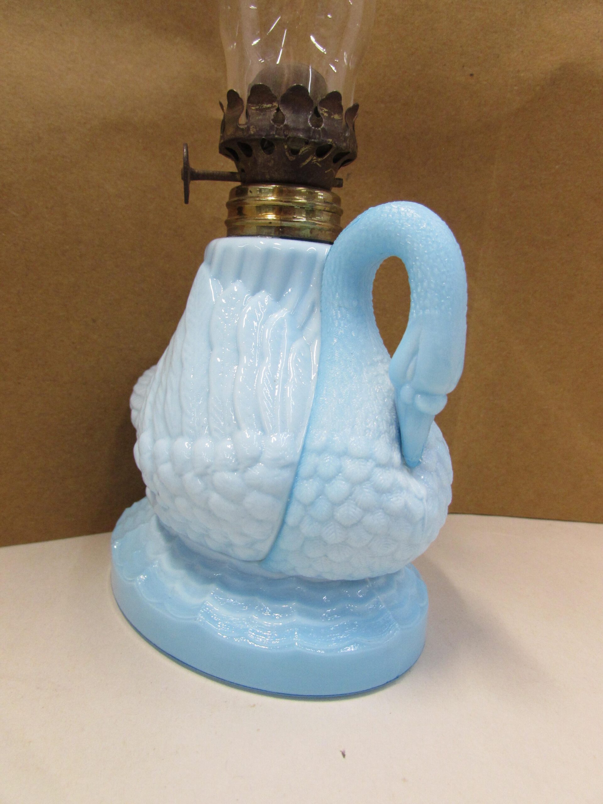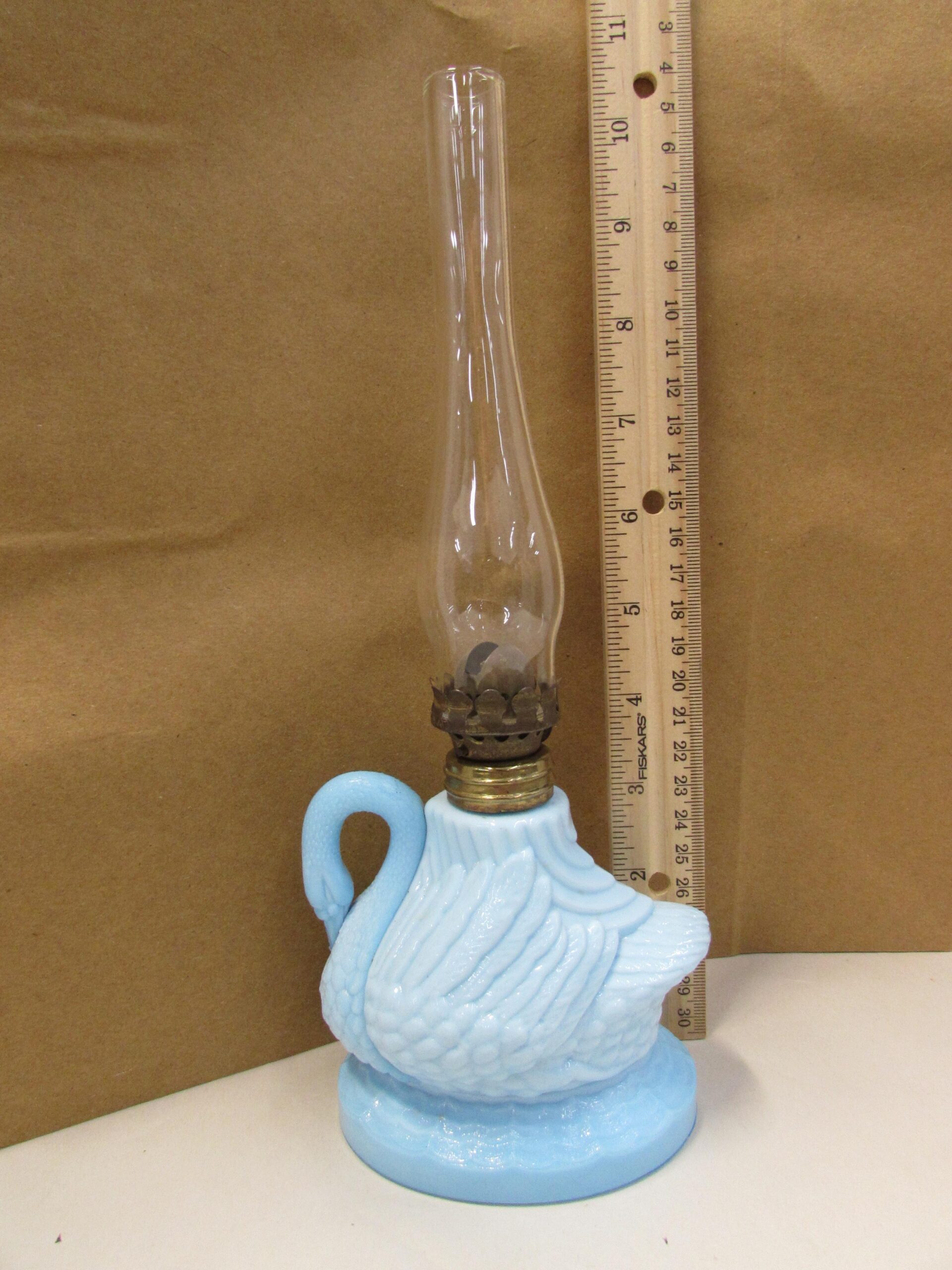 Very rare antique swan mini oil lamp, blue milk glass, circa 1800’s.