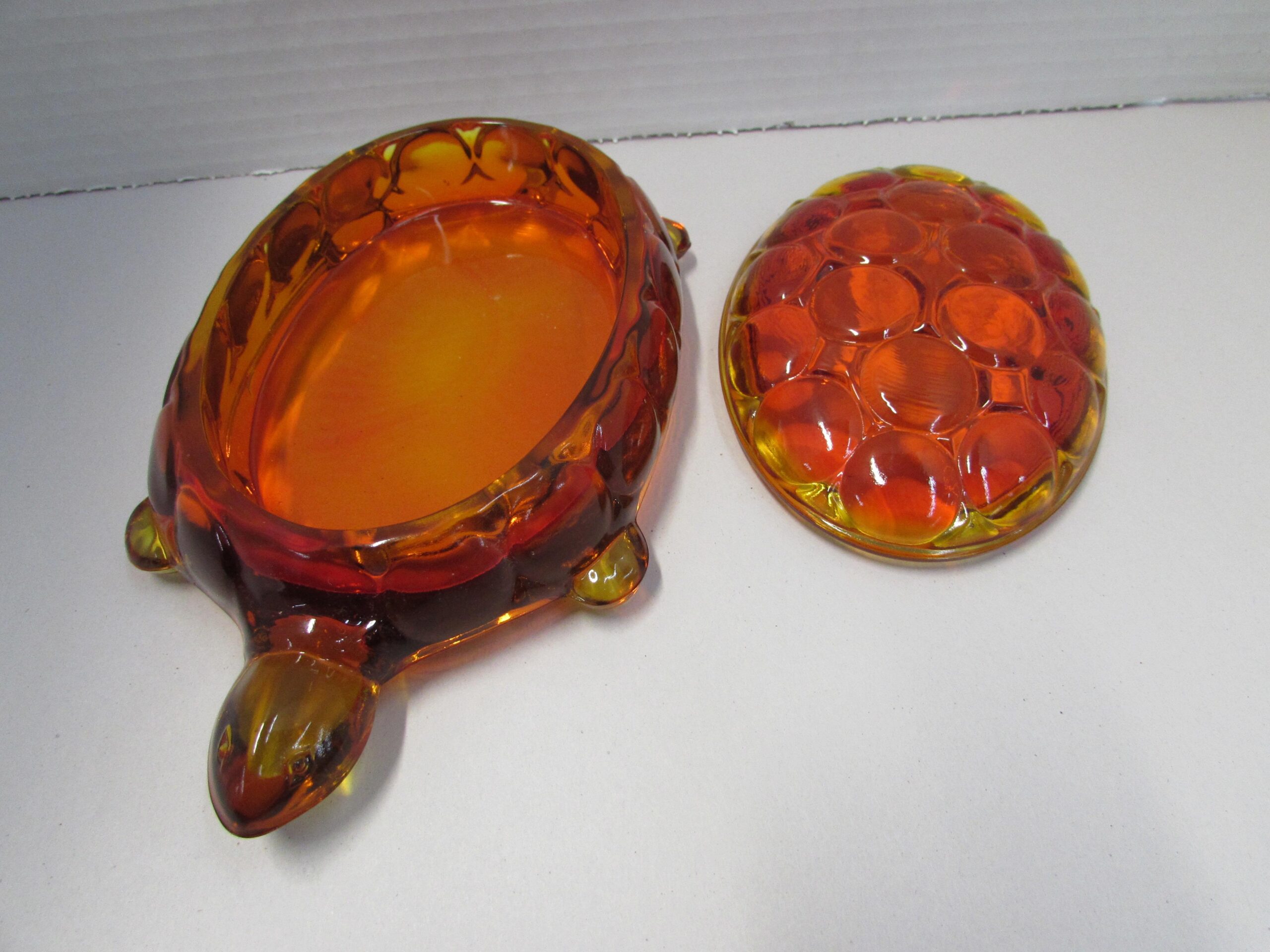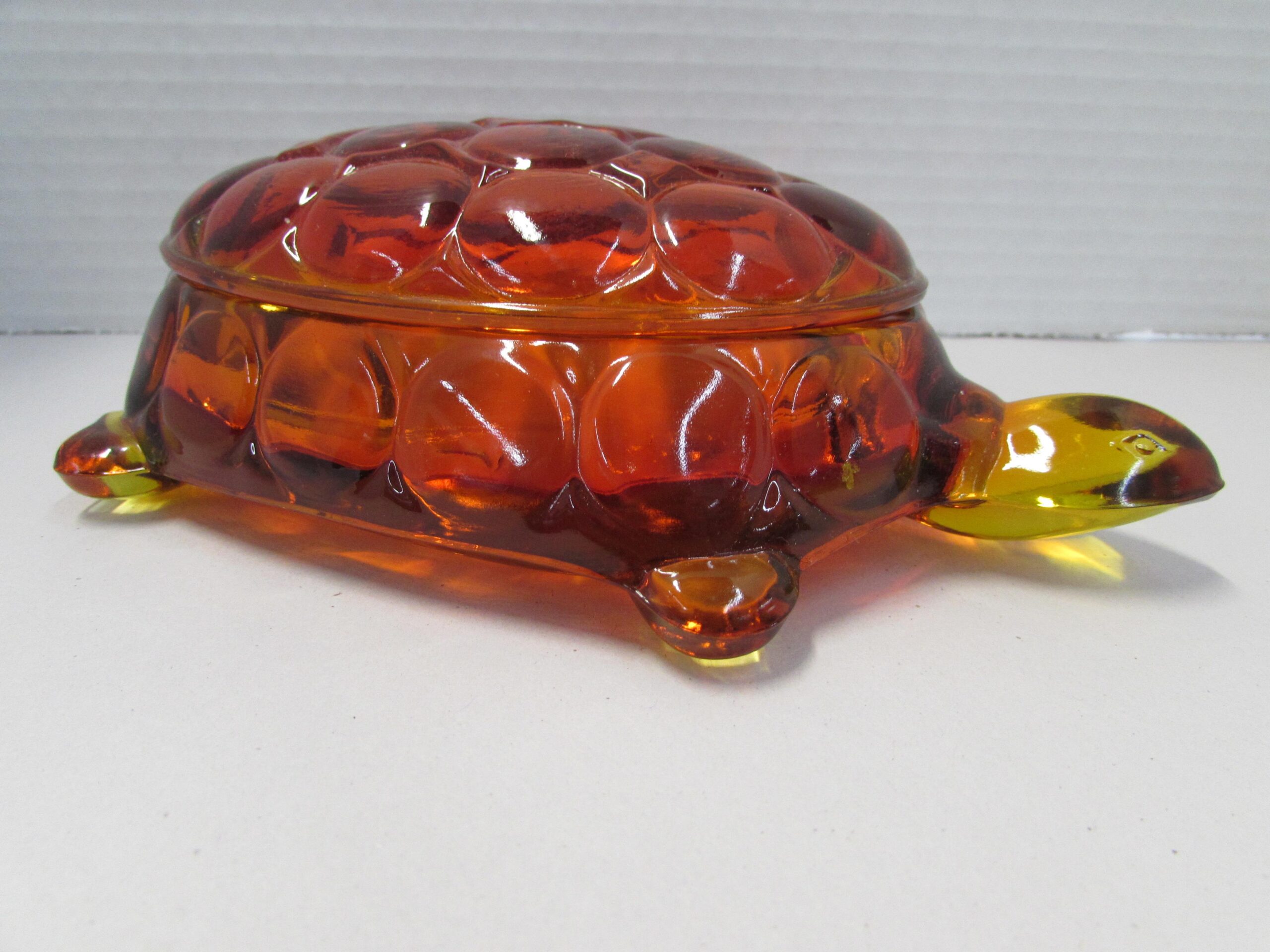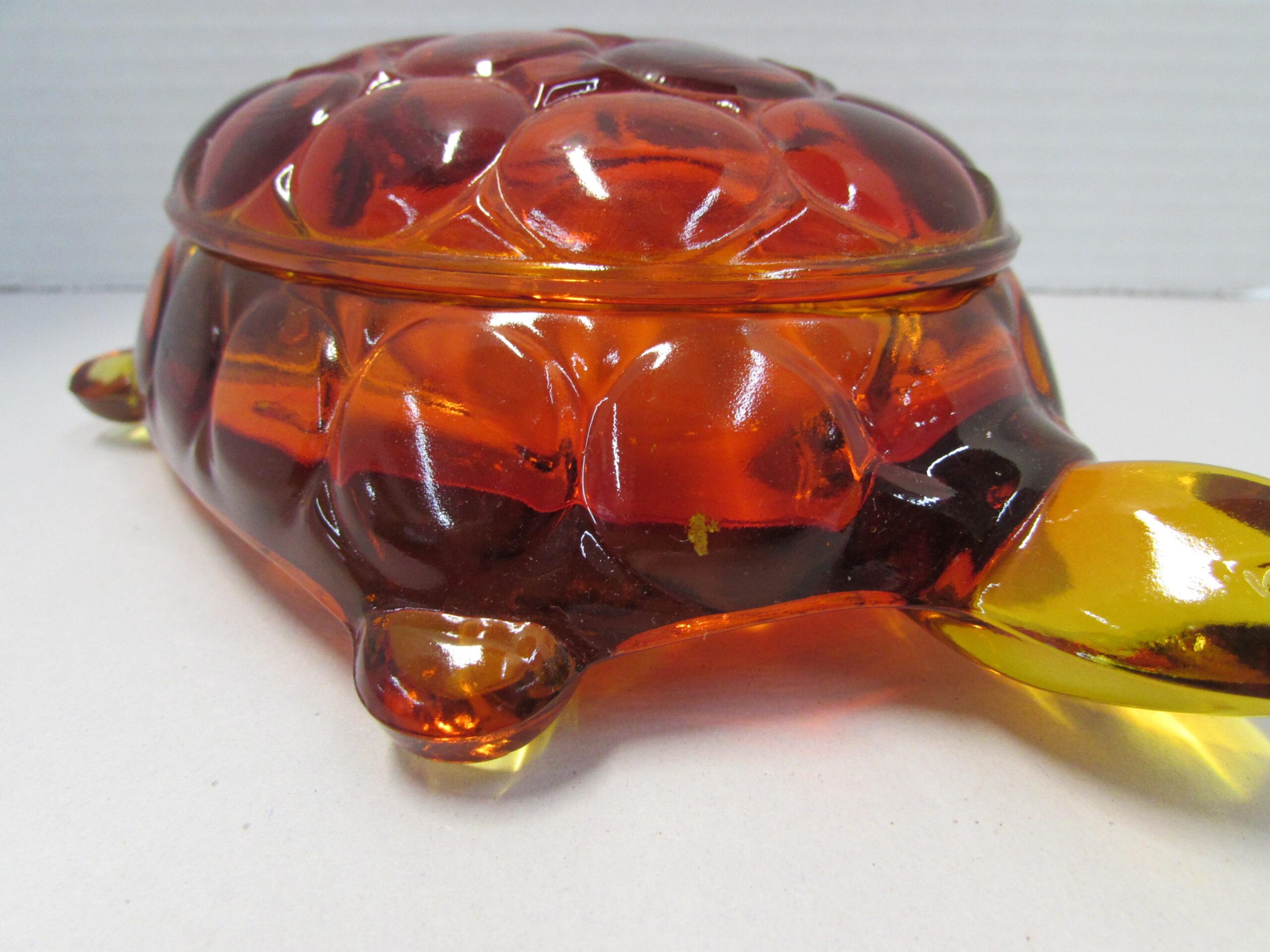 Westmoreland thousand eyes amberina turtle candy/trinket box.