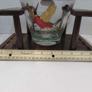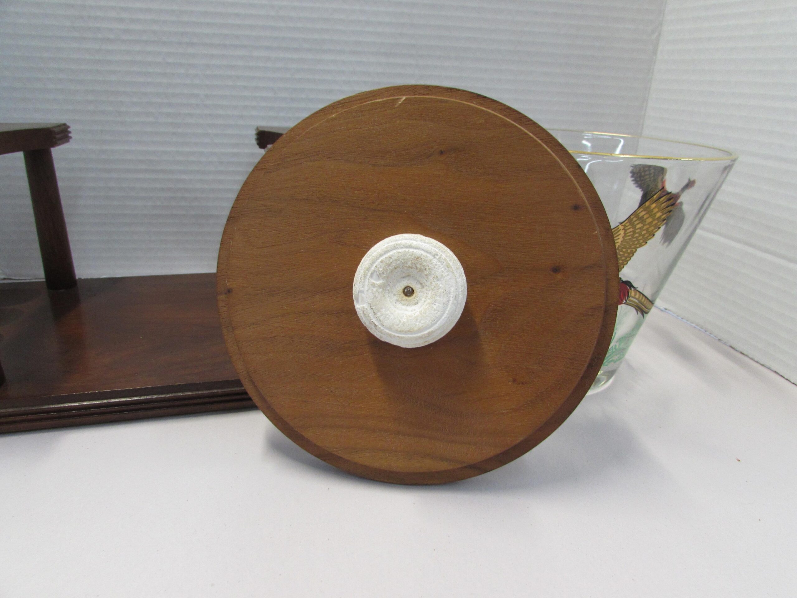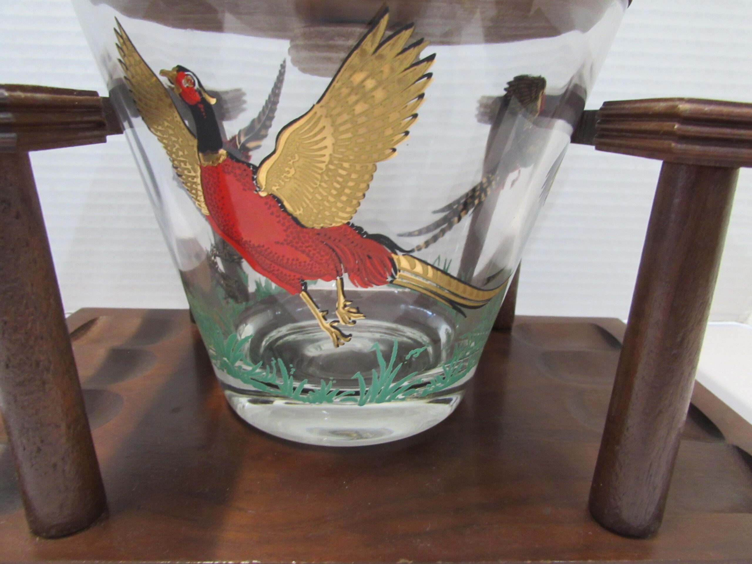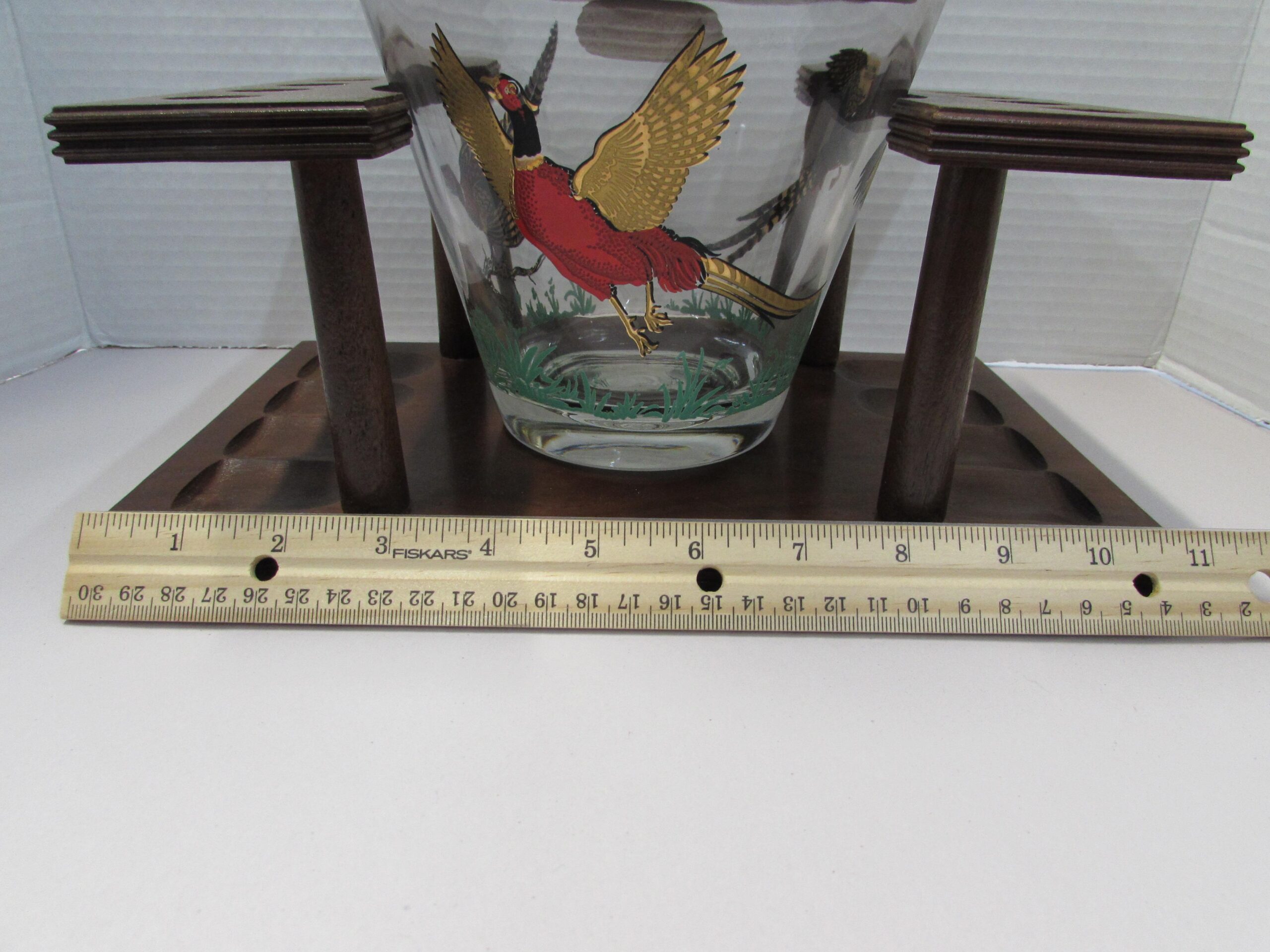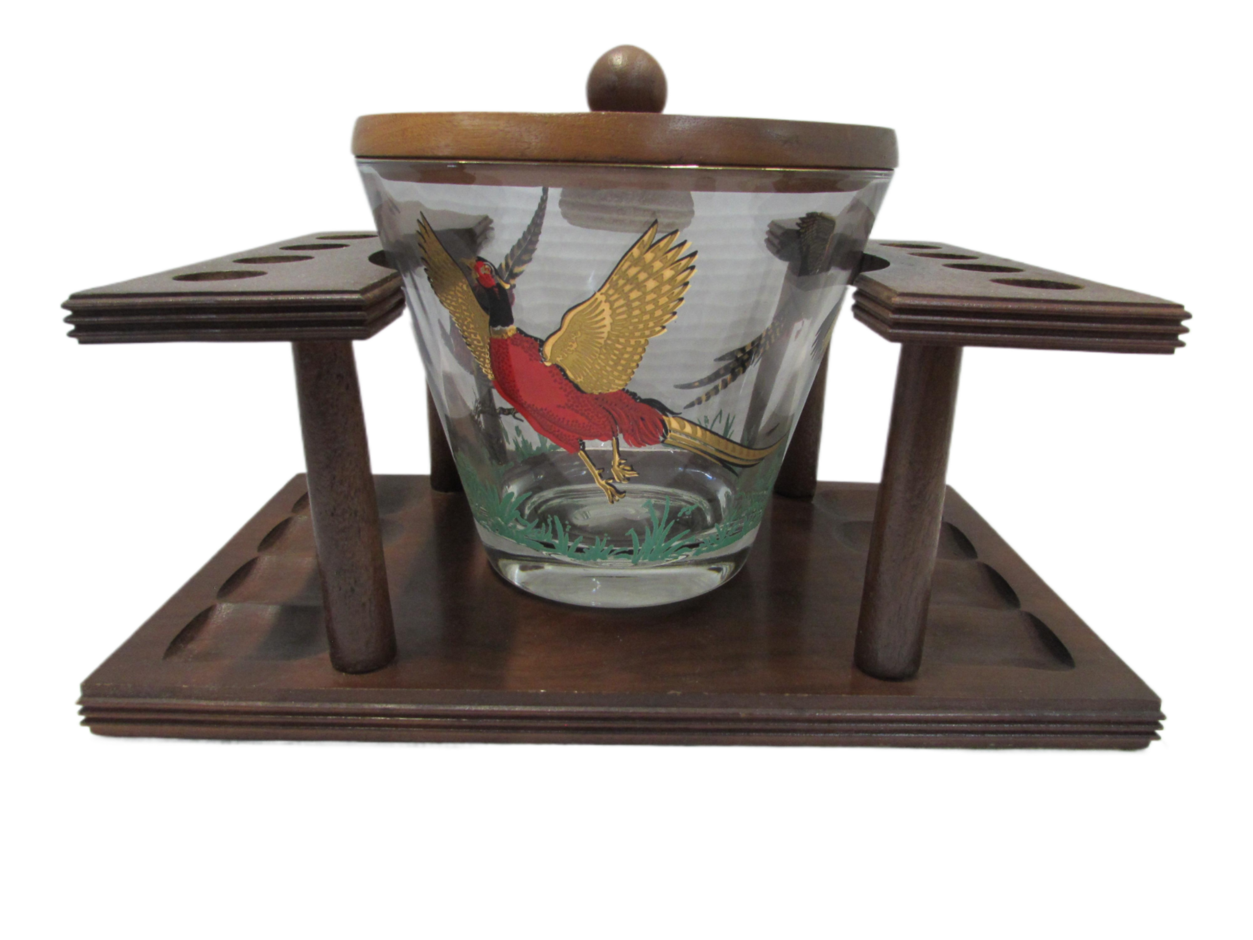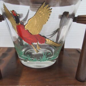 Wooden pipe holder with tobacco jar humidor, hand-painted pheasant.
