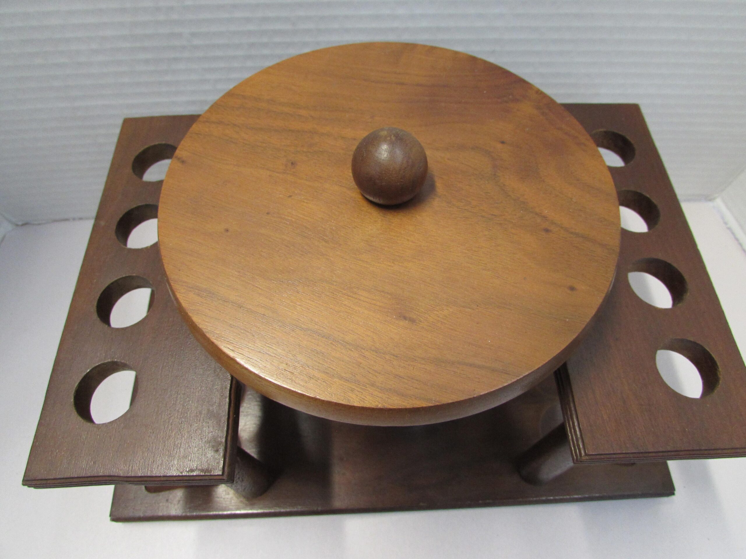 Wooden Pipe Holder with Tobacco Jar Humidor